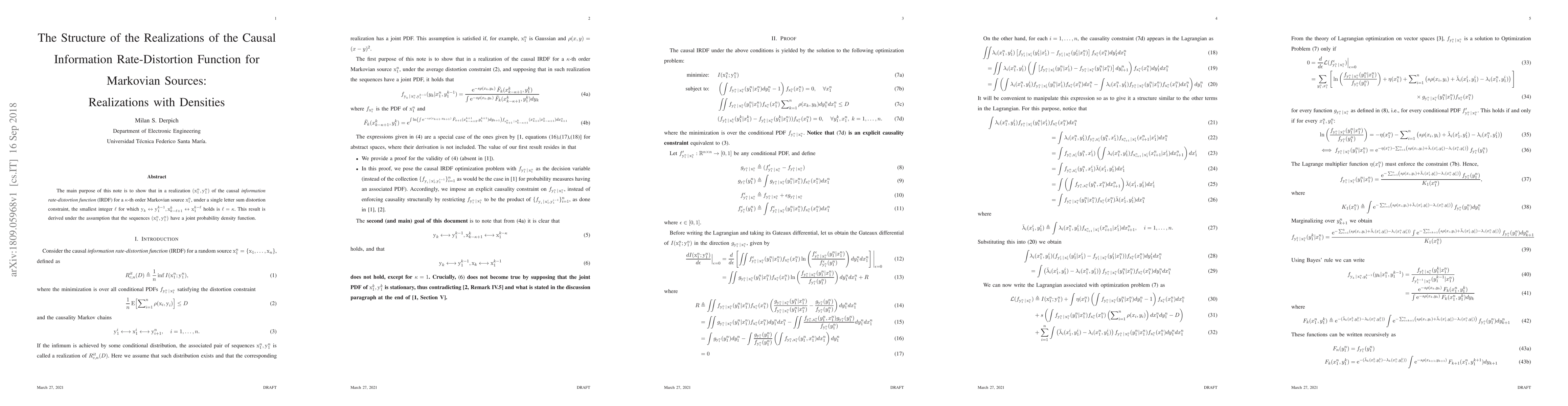 The main purpose of this note is to show that in a realization $(x_{1}^{n}, y_{1}^{n})$ of the causal \textit{information rate-distortion function} (IRDF) for a $\kappa$-th order Markovian source $x_{1}^{n}$, under a single letter sum distortion constraint, the smallest integer $\ell$ for which $y_{k} \leftrightarrow y_{1}^{k-1},x_{k-\ell+1}^{k} \leftrightarrow x_{1}^{k-\ell}$ holds is $\ell=\kappa$. This result is derived under the assumption that the sequences $(x_{1}^{n},y_{1}^{n})$ have a joint probability density function.
