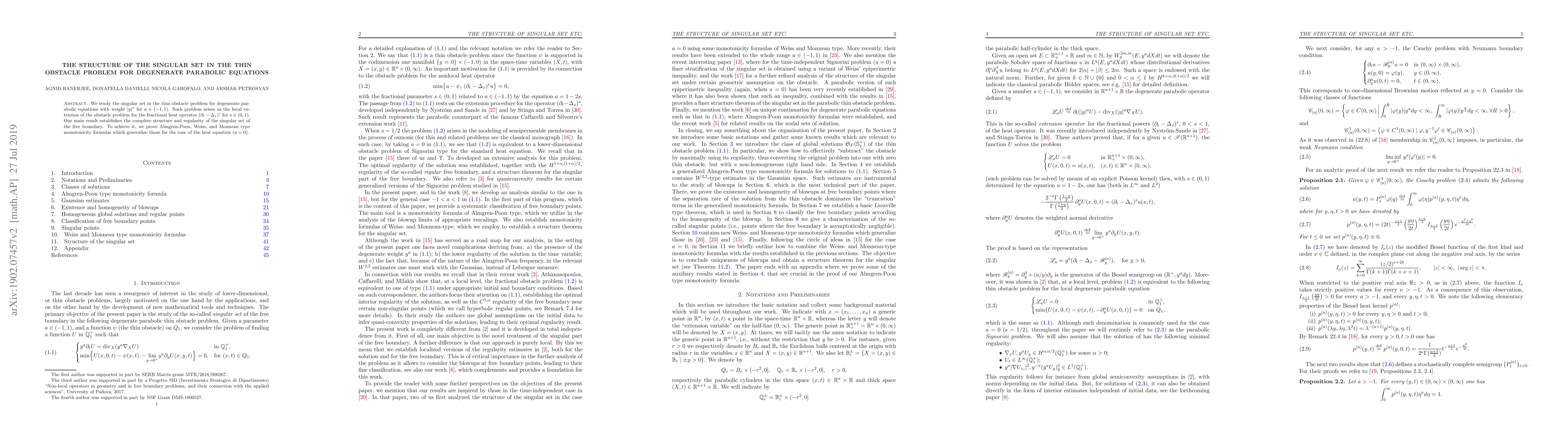 We study the singular set in the thin obstacle problem for degenerate parabolic equations with weight $|y|^a$ for $a \in (-1,1)$. Such problem arises as the local extension of the obstacle problem for the fractional heat operator $(\partial_t - \Delta_x)^s$ for $s \in (0,1)$. Our main result establishes the complete structure and regularity of the singular set of the free boundary. To achieve it, we prove Almgren-Poon, Weiss, and Monneau type monotonicity formulas which generalize those for the case of the heat equation ($a=0$).