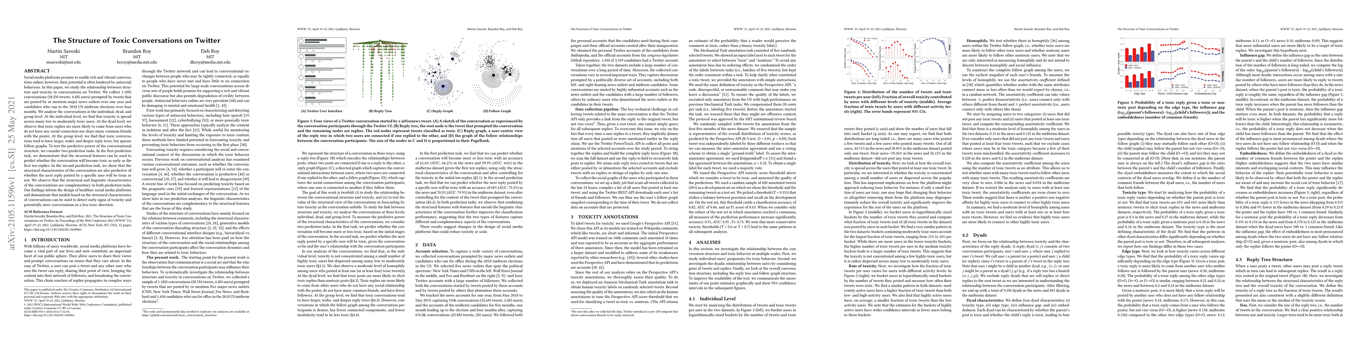 This paper investigates the relationship between the structure of Twitter conversations and their toxicity, analyzing 1.18M conversations involving major news outlets and 2018 US midterm election candidates. It finds that toxic replies often come from disconnected users and that toxic conversations have larger, deeper reply trees. The study demonstrates that structural features can predict toxicity early in a conversation and influence future replies, suggesting potential for designing less toxic social media interactions.