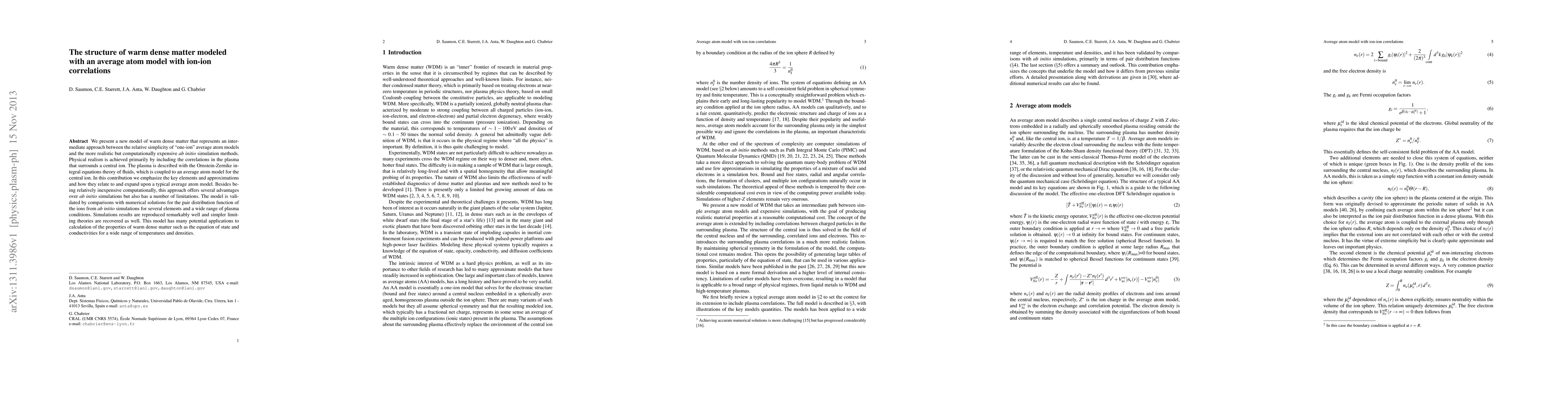 We present a new model of warm dense matter that represents an intermediate approach between the relative simplicity of ''one-ion'' average atom models and the more realistic but computationally expensive ab initio simulation methods. Physical realism is achieved primarily by including the correlations in the plasma that surrounds a central ion. The plasma is described with the Ornstein-Zernike integral equations theory of fluids, which is coupled to an average atom model for the central ion. In this contribution we emphasize the key elements and approximations and how they relate to and expand upon a typical average atom model. Besides being relatively inexpensive computationally, this approach offers several advantages over ab initio simulations but also has a number of limitations. The model is validated by comparisons with numerical solutions for the pair distribution function of the ions from ab initio simulations for several elements and a wide range of plasma conditions. Simulations results are reproduced remarkably well and simpler limiting theories are recovered as well. This model has many potential applications to calculation of the properties of warm dense matter such as the equation of state and conductivities for a wide range of temperatures and densities.