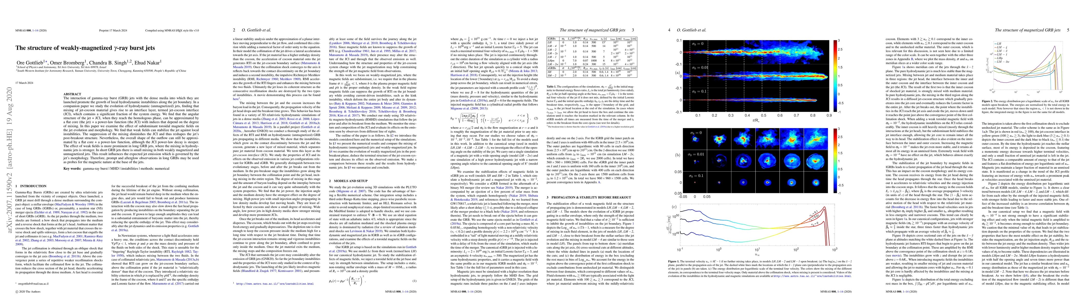 This paper investigates how subdominant toroidal magnetic fields influence the structure and evolution of weakly-magnetized gamma-ray burst (GRB) jets. It finds that weak magnetic fields stabilize jets against instabilities, reducing the jet-cocoon interface (JCI) and altering its morphology, with more pronounced effects in long GRB jets.