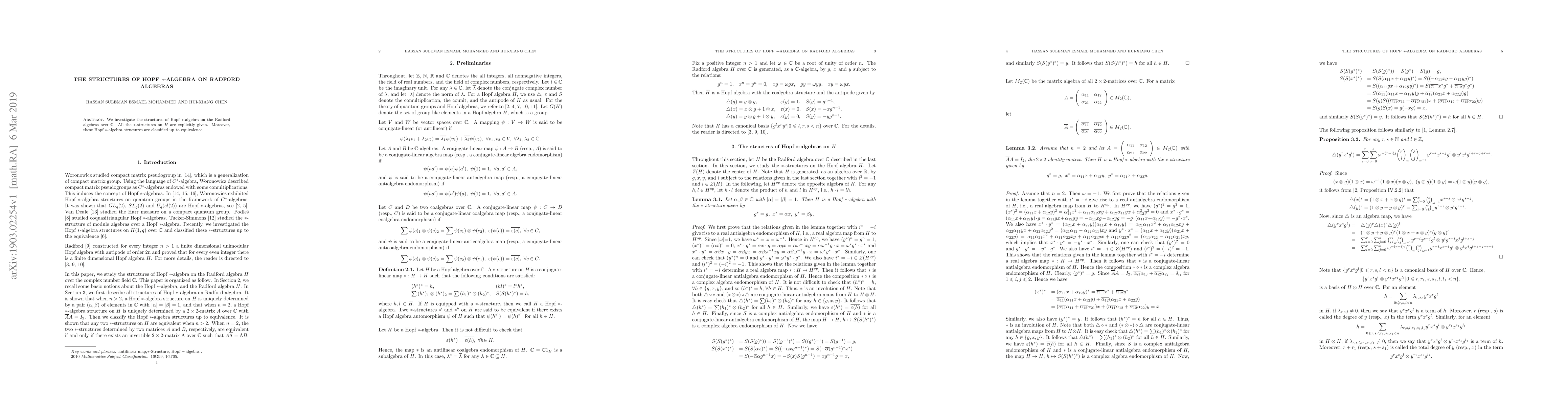 We investigate the structures of Hopf $\ast$-algebra on the Radford algebras over $\mathbb {C}$. All the $*$-structures on $H$ are explicitly given. Moreover, these Hopf $*$-algebra structures are classified up to equivalence.
