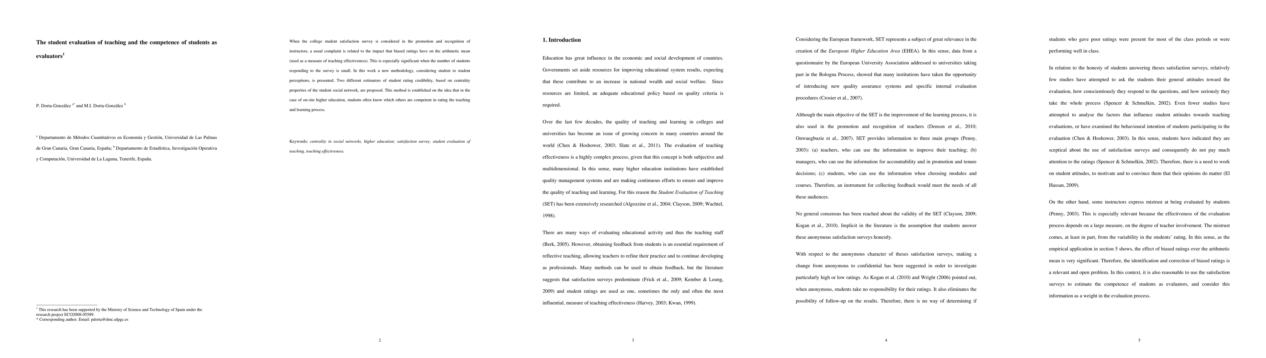 This research introduces a novel methodology to assess teaching effectiveness, addressing bias in student evaluations. It proposes estimators based on students' social network centrality, assuming competent students can identify peers capable of credible evaluations.