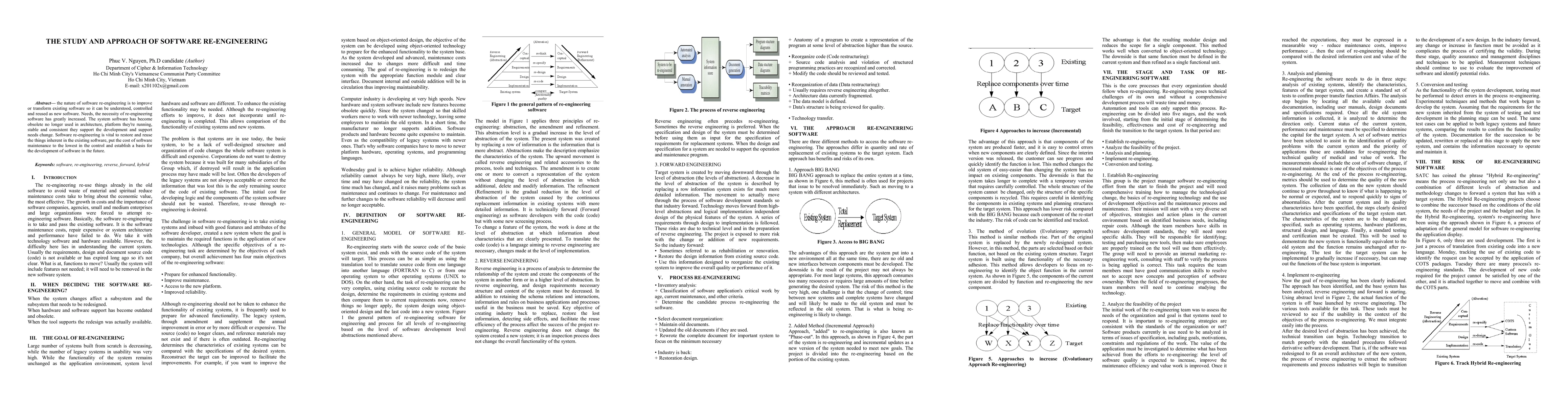 The nature of software re-engineering is to improve or transform existing software so it can be understood, controlled and reused as new software. Needs, the necessity of re-engineering software has greatly increased. The system software has become obsolete no longer used in architecture, platform they're running, stable and consistent they support the development and support needs change. Software re-engineering is vital to restore and reuse the things inherent in the existing software, put the cost of software maintenance to the lowest in the control and establish a basis for the development of software in the future.