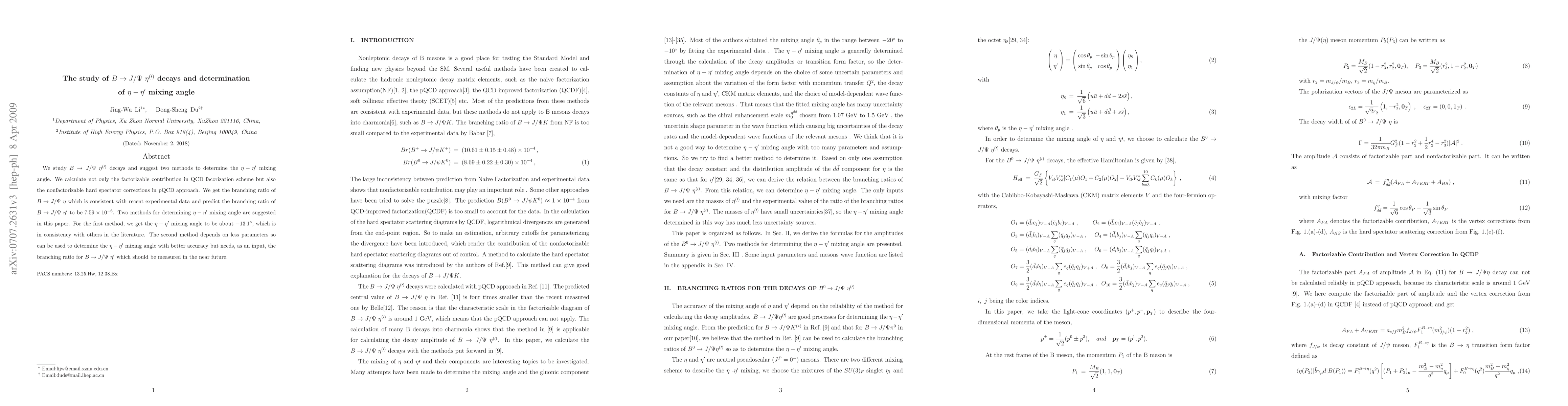 This paper investigates $B\to J/\Psi \eta^{(\prime)}$ decays and proposes two methods to determine the $\eta-\eta^{\prime}$ mixing angle, incorporating both factorizable and nonfactorizable corrections. The predicted branching ratio for $B\to J/\Psi \eta^{\prime}$ is $7.59\times 10^{-6}$, and the mixing angle is estimated to be $-13.1^{\circ}$.