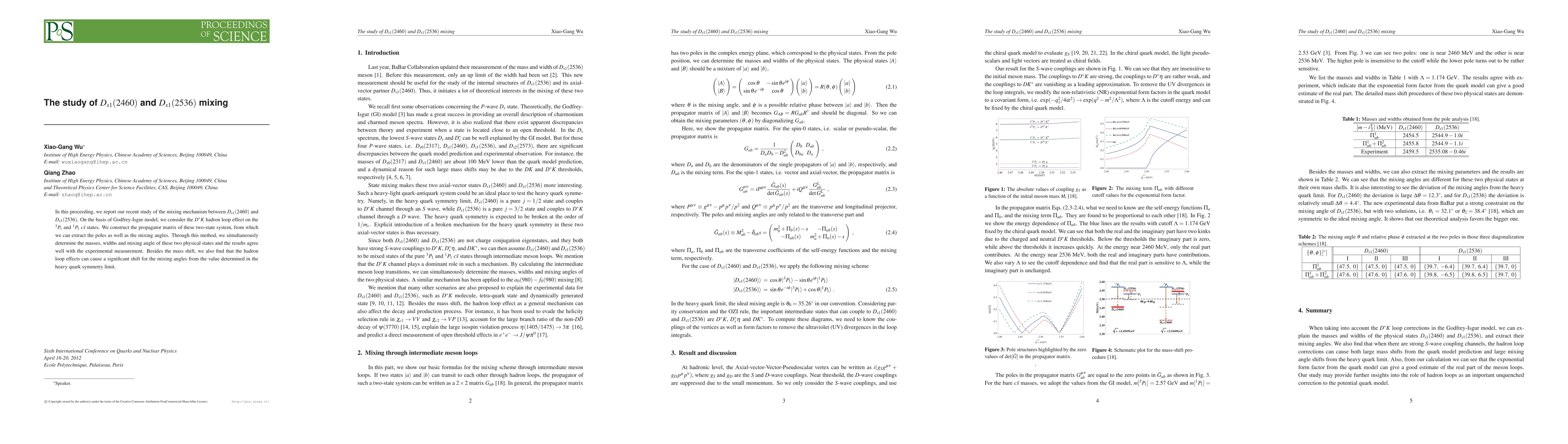 In this proceeding, we report our recent study of the mixing mechanism between $D_{s1}(2460)$ and $D_{s1}(2536)$. On the basis of Godfrey-Isgur model, we consider the $D^*K$ hadron loop effect on the ${}^3P_1$ and ${}^1P_1$ $c\bar{s}$ states. We construct the propagator matrix of these two-state system, from which we can extract the poles as well as the mixing angles. Through this method, we simultaneously determine the masses, widths and mixing angle of these two physical states and the results agree well with the experimental measurement. Besides the mass shift, we also find that the hadron loop effects can cause a significant shift for the mixing angles from the value determined in the heavy quark symmetry limit.