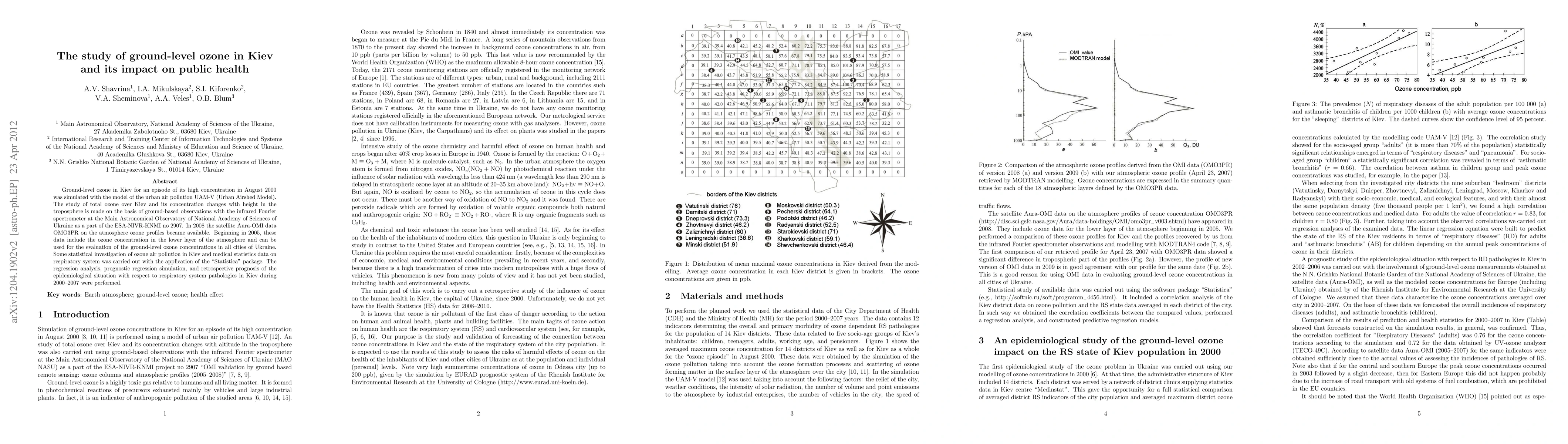 A study analyzed ground-level ozone in Kiev, Ukraine, using models and satellite data to understand its impact on public health. The research found correlations between high ozone concentrations and respiratory system pathologies.