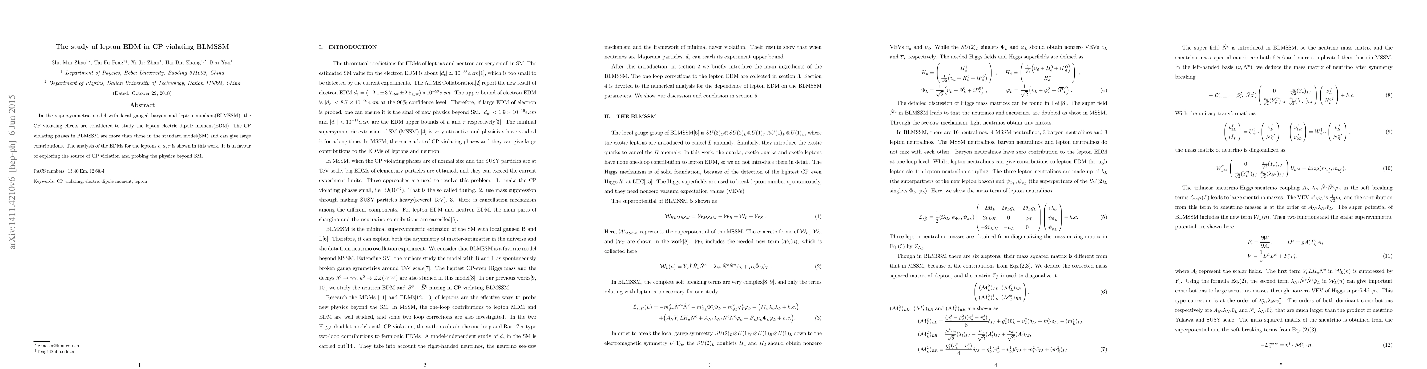 This study investigates the lepton electric dipole moments (EDM) in the CP-violating BLMSSM model, revealing that it offers more CP-violating phases than the standard model, potentially leading to significant EDM contributions for leptons $e, \mu, \tau$. This research supports exploring the source of CP violation and probing physics beyond the standard model.