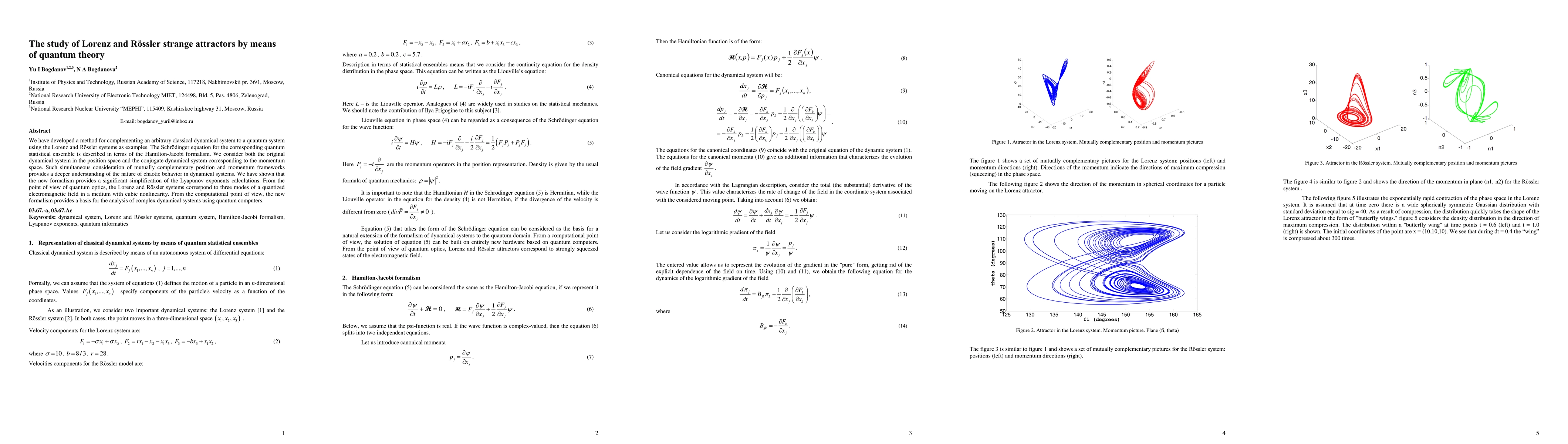 We have developed a method for complementing an arbitrary classical dynamical system to a quantum system using the Lorenz and R\"ossler systems as examples. The Schr\"odinger equation for the corresponding quantum statistical ensemble is described in terms of the Hamilton-Jacobi formalism. We consider both the original dynamical system in the position space and the conjugate dynamical system corresponding to the momentum space. Such simultaneous consideration of mutually complementary position and momentum frameworks provides a deeper understanding of the nature of chaotic behavior in dynamical systems. We have shown that the new formalism provides a significant simplification of the Lyapunov exponents calculations. From the point of view of quantum optics, the Lorenz and R\"ossler systems correspond to three modes of a quantized electromagnetic field in a medium with cubic nonlinearity. From the computational point of view, the new formalism provides a basis for the analysis of complex dynamical systems using quantum computers.