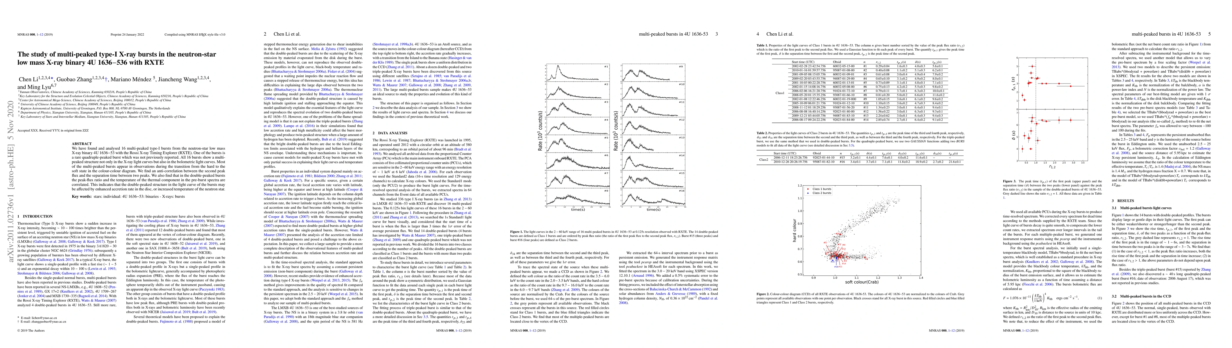 This study analyzes 16 multi-peaked type-I X-ray bursts from the neutron-star binary 4U 1636$-$536 using RXTE data, including a rare quadruple-peaked burst. The findings show an anti-correlation between the second peak flux and the time between peaks, suggesting a link between burst structure and accretion dynamics.