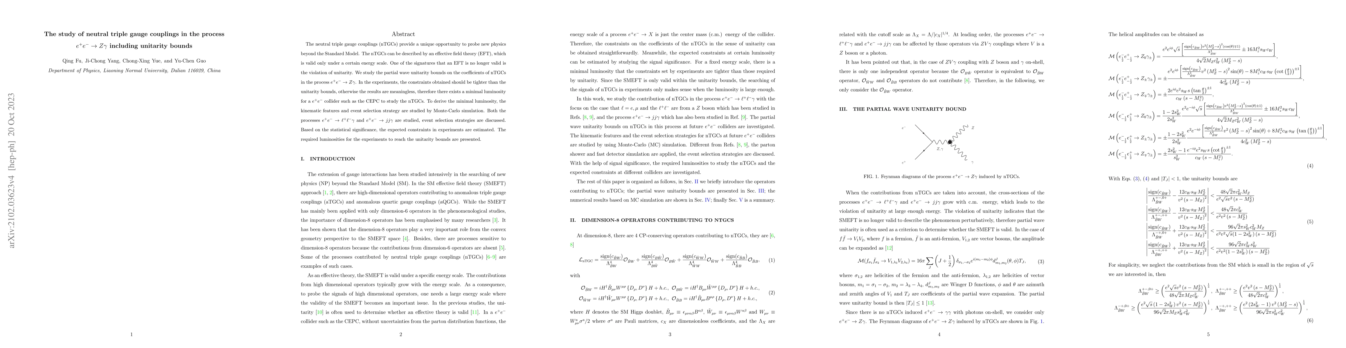 This paper investigates neutral triple gauge couplings (nTGCs) in the $e^+e^-\to Z\gamma$ process, examining their implications for physics beyond the Standard Model. It derives minimal luminosity requirements for colliders like the CEPC to study nTGCs by analyzing unitarity bounds and employing Monte-Carlo simulations for event selection strategies.