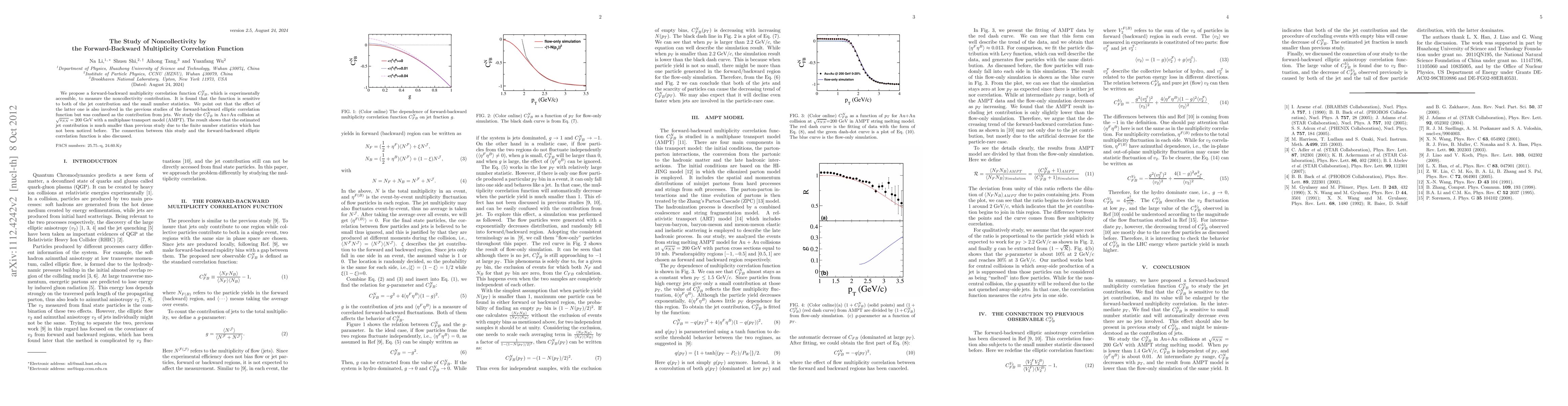 A forward-backward multiplicity correlation function CNFB was proposed to study jet contributions.
