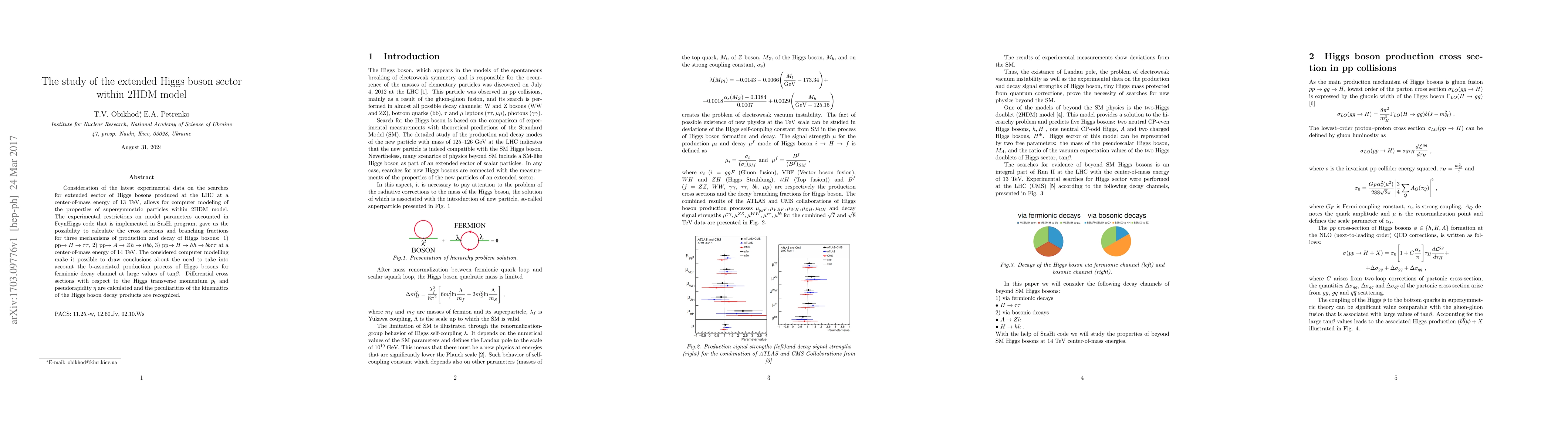 Consideration of the latest experimental data on the searches for extended sector of Higgs bosons produced at the LHC at a center-of-mass energy of 13 TeV, allows for computer modeling of the properties of supersymmetric particles within 2HDM model. The experimental restrictions on model parameters accounted in FeynHiggs code that is implemented in SusHi program, gave us the possibility to calculate the cross sections and branching fractions for three mechanisms of production and decay of Higgs bosons: 1) pp$\rightarrow H\rightarrow\tau\tau$, 2) pp$\rightarrow A\rightarrow Zh\rightarrow llbb$, 3) pp$\rightarrow H\rightarrow hh\rightarrow bb\tau\tau$ at a center-of-mass energy of 14 TeV. The considered computer modelling make it possible to draw conclusions about the need to take into account the b-associated production process of Higgs bosons for fermionic decay channel at large values of tan$\beta$. Differential cross sections with respect to the Higgs transverse momentum $p_t$ and pseudorapidity $\eta$ are calculated and the peculiarities of the kinematics of the Higgs boson decay products are recognized.