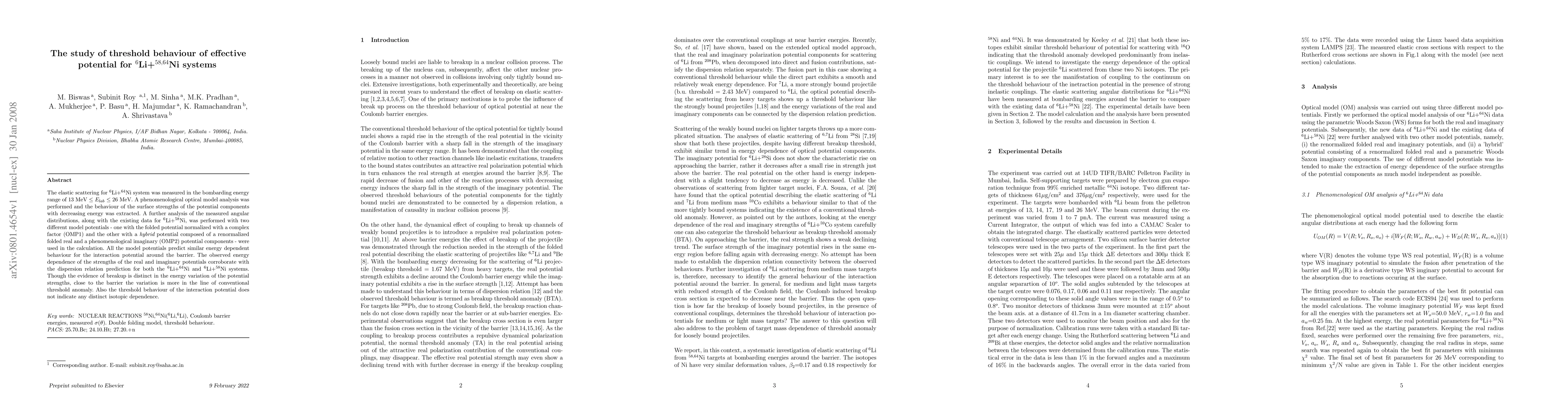 The elastic scattering for $^6$Li+$^{64}$Ni system was measured in the bombarding energy range of 13 MeV $\leq$ $E_{lab}$ $\leq$ 26 MeV. A phenomenological optical model analysis was performed and the behaviour of the surface strengths of the potential components with decreasing energy was extracted. A further analysis of the measured angular distributions, along with the existing data for $^6$Li+$^{58}$Ni, was performed with two different model potentials - one with the folded potential normalized with a complex factor (OMP1) and the other with a {\it hybrid} potential composed of a renormalized folded real and a phenomenological imaginary (OMP2) potential components - were used in the calculation. All the model potentials predict similar energy dependent behaviour for the interaction potential around the barrier. The observed energy dependence of the strengths of the real and imaginary potentials corroborate with the dispersion relation prediction for both the $^6$Li+$^{64}$Ni and $^6$Li+$^{58}$Ni systems. Though the evidence of breakup is distinct in the energy variation of the potential strengths, close to the barrier the variation is more in the line of conventional threshold anomaly. Also the threshold behaviour of the interaction potential does not indicate any distinct isotopic dependence.