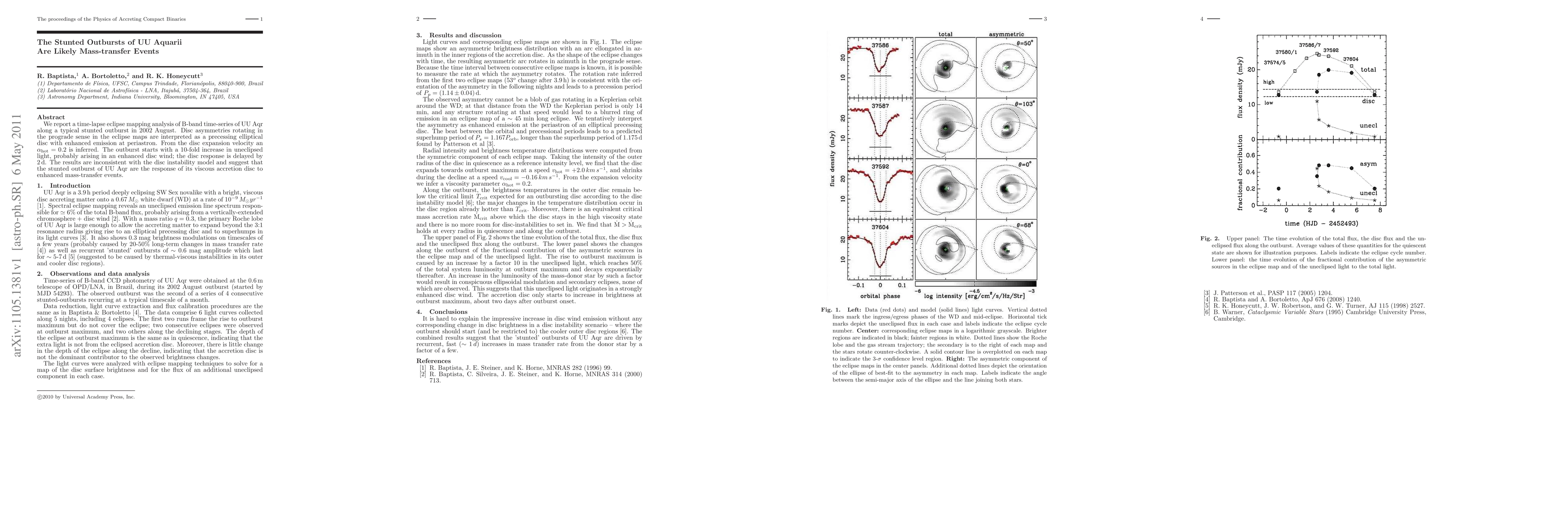 This paper analyzes a typical stunted outburst in the nova-like variable UU Aquarii, finding disc asymmetries indicative of a precessing elliptical disc. The study suggests that the outburst is a response to enhanced mass-transfer events rather than a disc instability, inferred from the disc viscosity and delayed disc response.