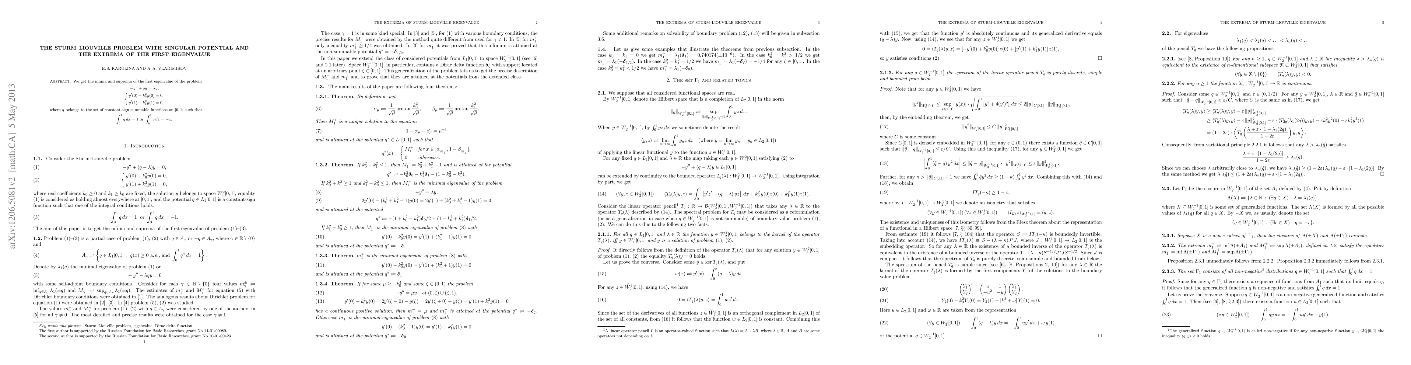On the basis of the theory of Sturm--Liouville problem with distribution coefficients we get the infima and suprema of the first eigenvalue of the problem $-y" + (q-\lambda) y=0, y'(0) -k_0^2 y(0) = y'(1) + k_1^2 y(1) = 0$, where $q$ belongs to the set of constant-sign summable functions on $[0,1]$ such that $\int_0^1 q dx=\pm 1$.