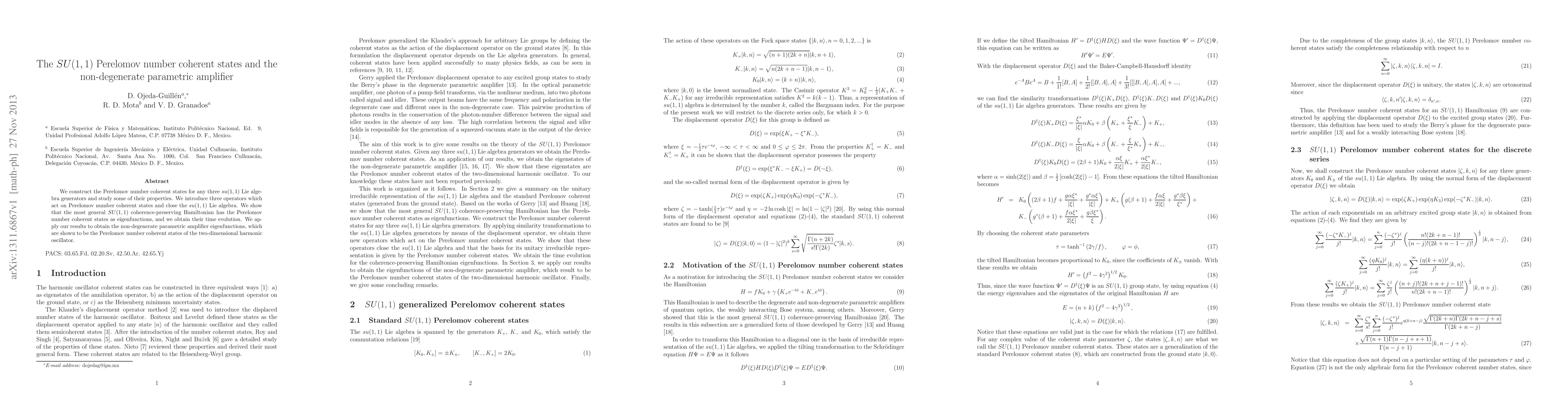 This paper constructs Perelomov number coherent states for the $su(1,1)$ Lie algebra, introduces operators that close the algebra, and demonstrates their use in describing the eigenfunctions of the non-degenerate parametric amplifier, which are identified as the coherent states of a two-dimensional harmonic oscillator.