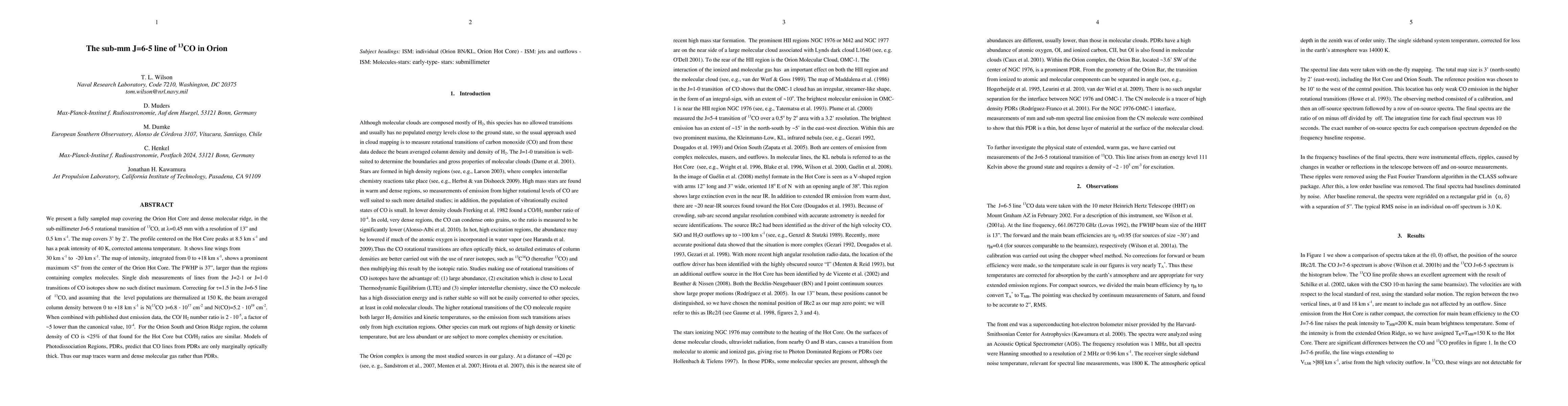 Researchers mapped the Orion Hot Core with 13CO's sub-millimeter J=6-5 line, revealing a prominent maximum in intensity that suggests warm and dense molecular gas rather than photodissociation regions.