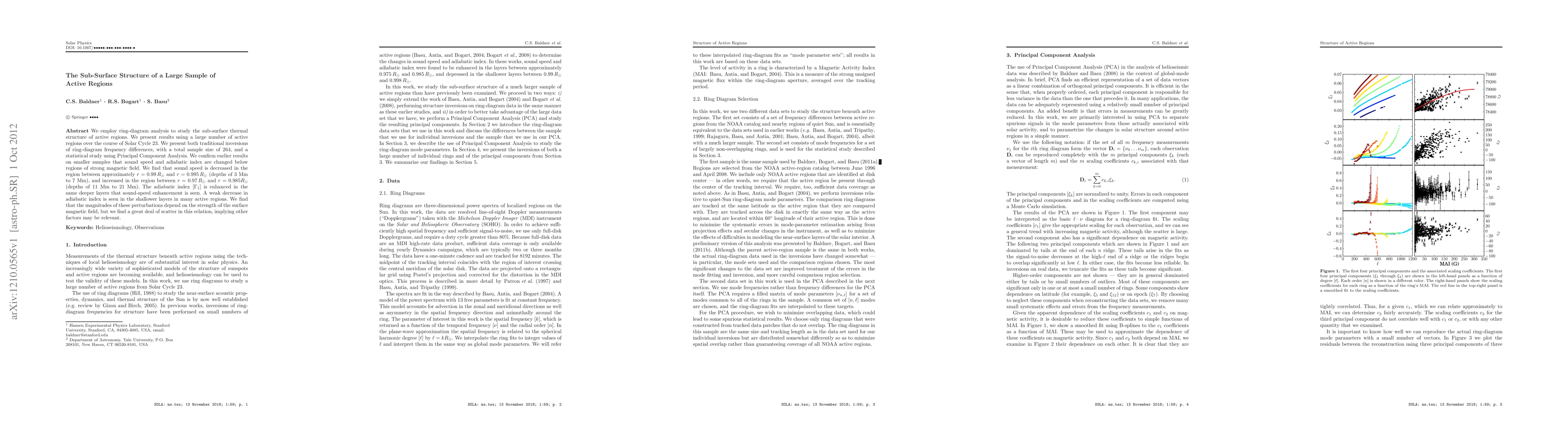 We employ ring-diagram analysis to study the sub-surface thermal structure of active regions. We present results using a large number of active regions over the course of Solar Cycle 23. We present both traditional inversions of ring-diagram frequency differences, with a total sample size of 264, and a statistical study using Principal Component Analysis. We confirm earlier results on smaller samples that sound speed and adiabatic index are changed below regions of strong magnetic field. We find that sound speed is decreased in the region between approximately r=0.99R_sun and r=0.995R_sun (depths of 3Mm to 7Mm), and increased in the region between r=0.97R_sun and r=0.985R_sun (depths of 11Mm to 21Mm). The adiabatic index is enhanced in the same deeper layers that sound-speed enhancement is seen. A weak decrease in adiabatic index is seen in the shallower layers in many active regions. We find that the magnitudes of these perturbations depend on the strength of the surface magnetic field, but we find a great deal of scatter in this relation, implying other factors may be relevant.