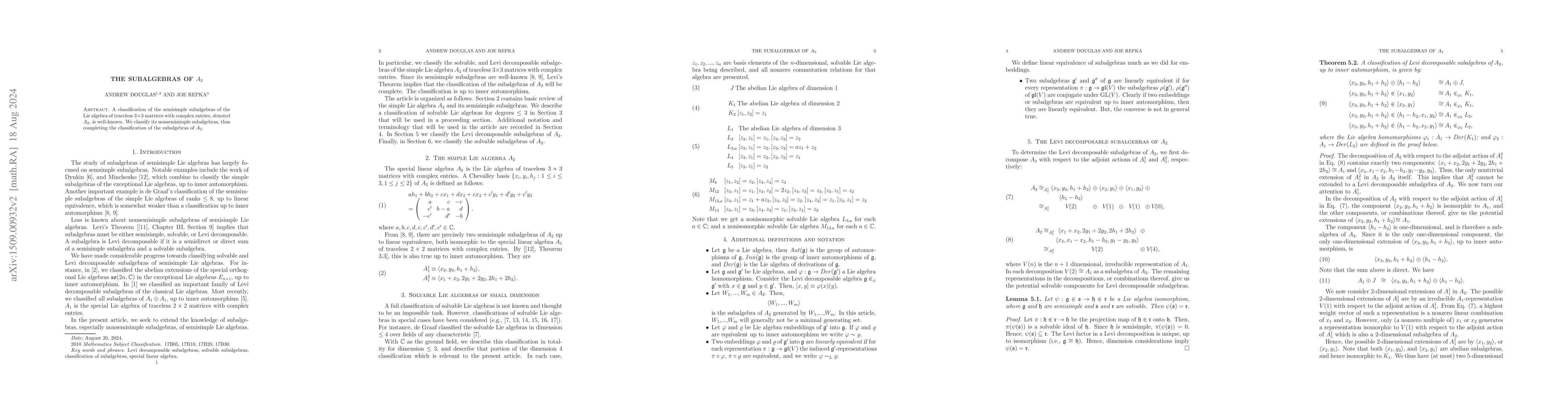 This paper completes the classification of all subalgebras of the Lie algebra $A_2$, focusing on the nonsemisimple subalgebras, after previously known classifications of semisimple subalgebras. The results provide a comprehensive understanding of the structure of $A_2$'s subalgebras.