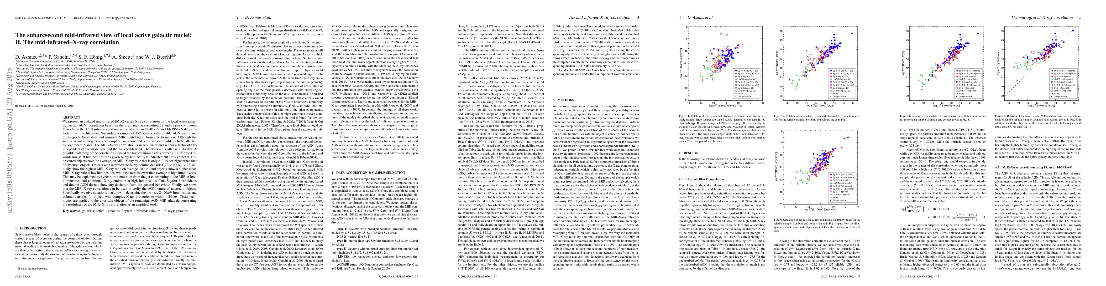 The study presents an updated mid-infrared (MIR) versus X-ray correlation for local active galactic nuclei (AGN) using high angular resolution 12 and 18 μm continuum fluxes from the AGN subarcsecond MIR atlas and 2-10 keV and 14-195 keV X-ray data from literature. The analysis focuses on 152 AGN objects with reliable AGN nature and multi-epoch X-ray data, aiming to minimize star formation contributions in MIR.