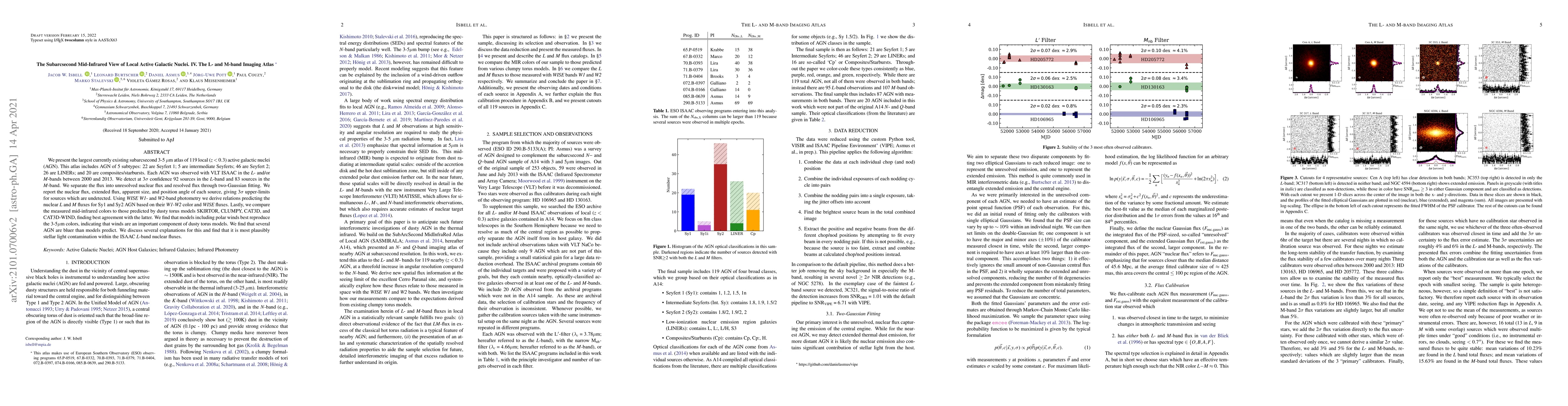 This paper provides a comprehensive atlas of 119 local active galactic nuclei (AGN) observed in the mid-infrared $L$- and $M$-bands, revealing nuclear and extended fluxes with subarcsecond resolution. The study finds that models including polar winds best match observed mid-infrared colors, suggesting their importance in dusty torus models.