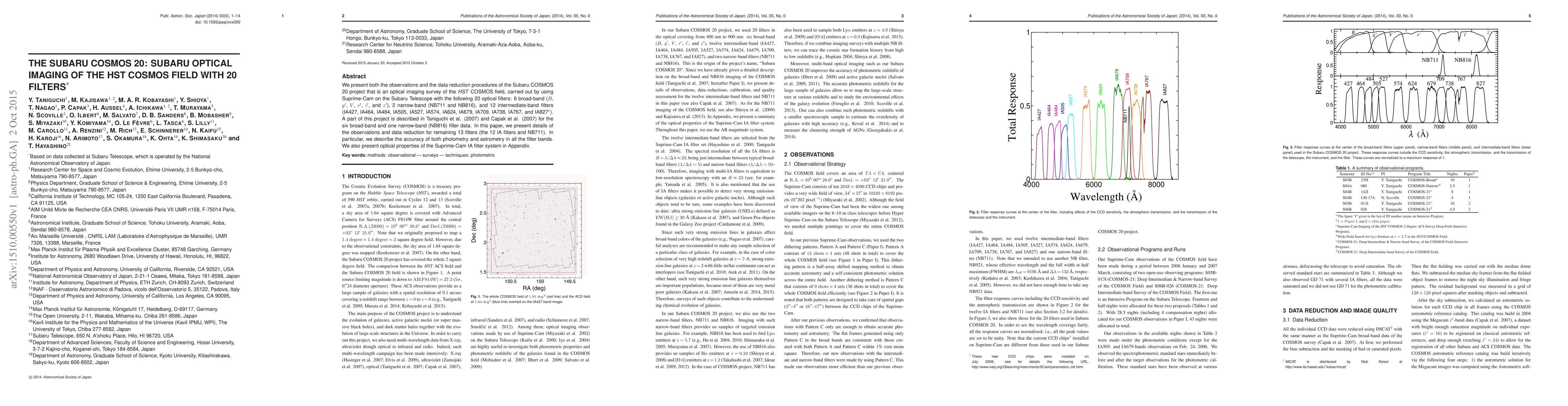The Subaru COSMOS 20 project conducts an optical imaging survey of the HST COSMOS field with 20 filters, presenting details on observations and data reduction for photometry and astrometry accuracy.