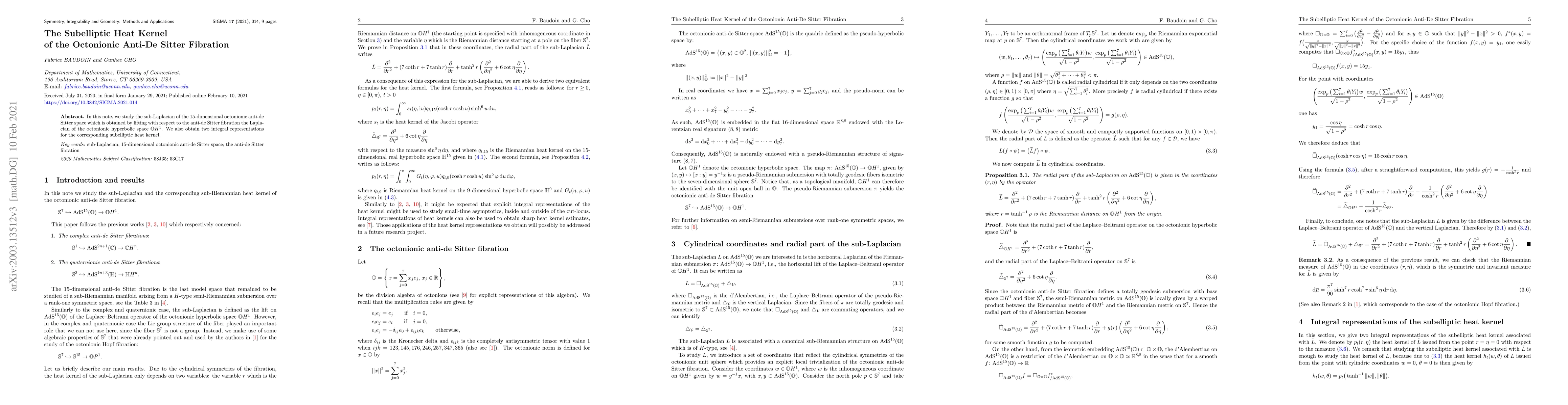 In this note, we study the sub-Laplacian of the 15-dimensional octonionic anti-de Sitter space which is obtained by lifting with respect to the anti-de Sitter fibration the Laplacian of the octonionic hyperbolic space $\mathbb{O}H^1$. We also obtain two integral representations for the corresponding subelliptic heat kernel.