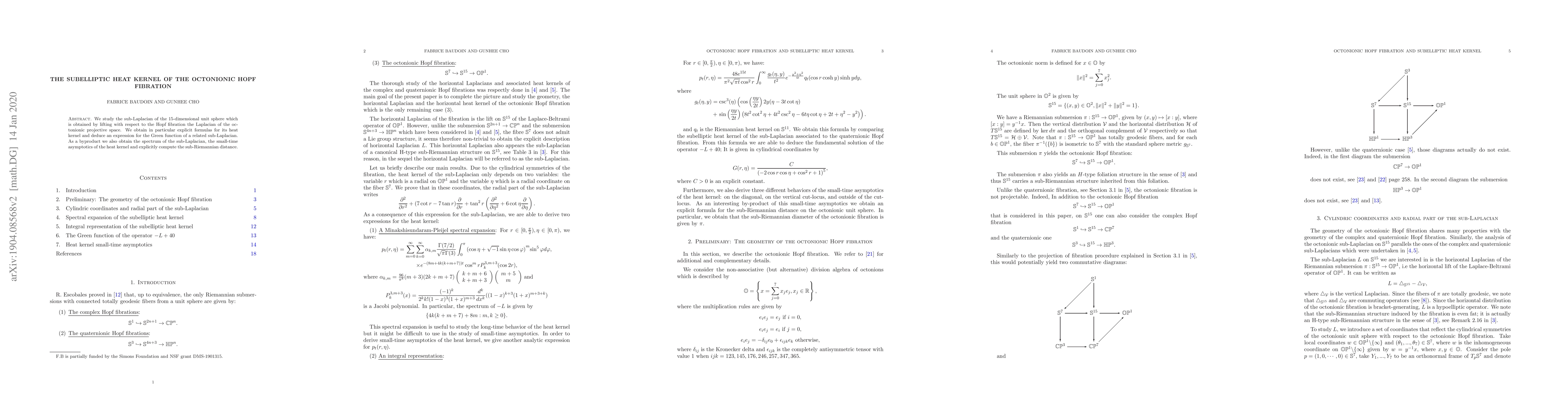 We study the sub-Laplacian of the $15$-dimensional unit sphere which is obtained by lifting with respect to the Hopf fibration the Laplacian of the octonionic projective space. We obtain in particular explicit formulas for its heat kernel and deduce an expression for the Green function of a related sub-Laplacian. As a byproduct we also obtain the spectrum of the sub-Laplacian, the small-time asymptotics of the heat kernel and explicitly compute the sub-Riemannian distance.