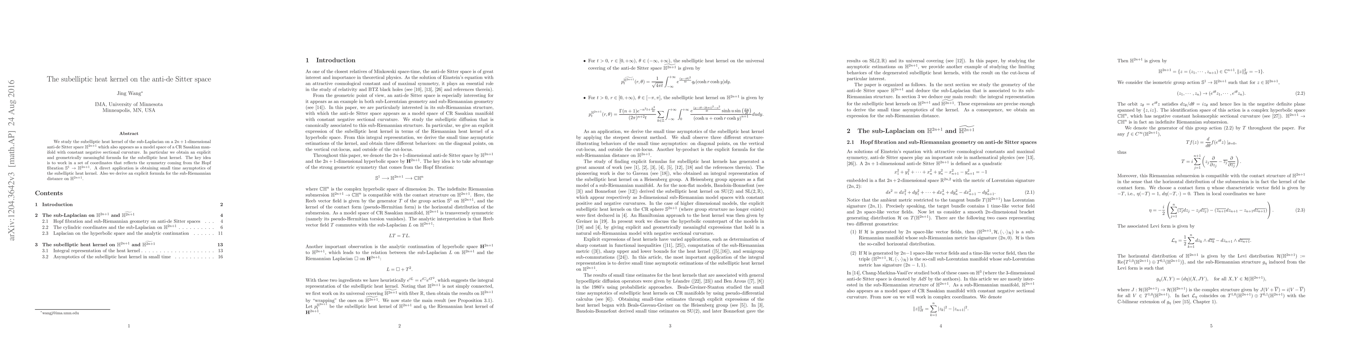 This paper derives an explicit formula for the subelliptic heat kernel on 2n+1-dimensional anti-de Sitter spaces, leveraging the symmetry from the Hopf fibration. It also provides small time asymptotics and an explicit formula for the sub-Riemannian distance on the space.