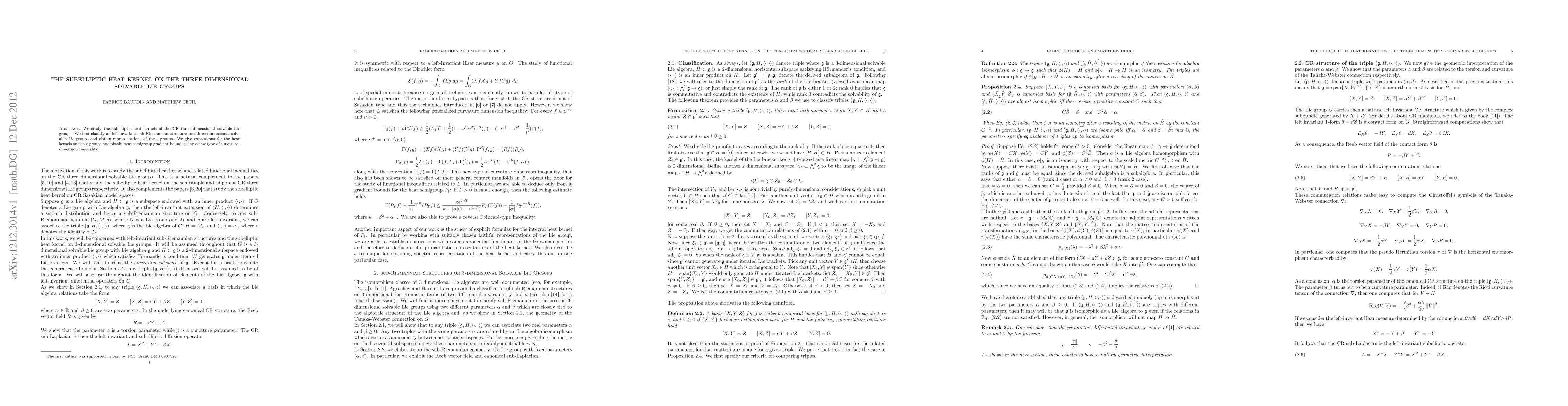 This paper classifies left-invariant sub-Riemannian structures on three-dimensional solvable Lie groups, derives expressions for their subelliptic heat kernels, and establishes heat semigroup gradient bounds utilizing a novel curvature-dimension inequality.