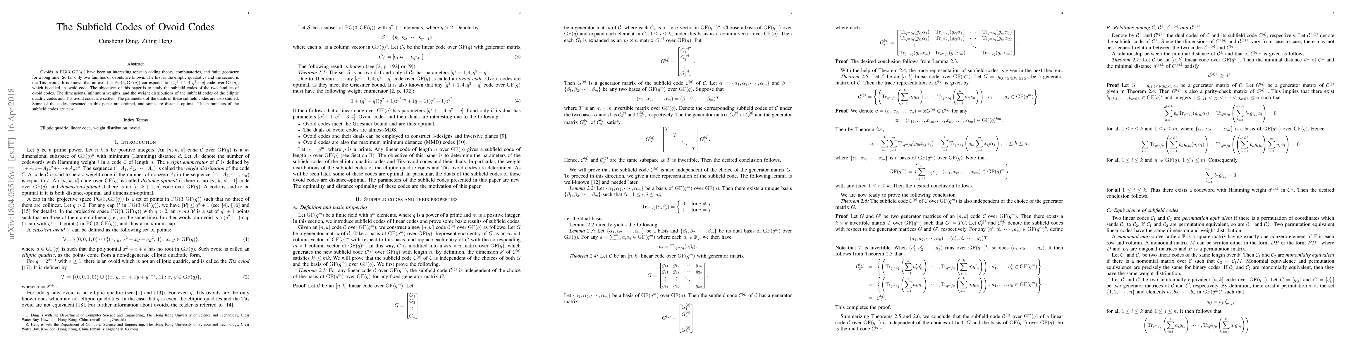 Ovoids in $\PG(3, \gf(q))$ have been an interesting topic in coding theory, combinatorics, and finite geometry for a long time. So far only two families of ovoids are known. The first is the elliptic quadratics and the second is the Tits ovoids. It is known that an ovoid in $\PG(3, \gf(q))$ corresponds to a $[q^2+1, 4, q^2-q]$ code over $\gf(q)$, which is called an ovoid code. The objectives of this paper is to study the subfield codes of the two families of ovoid codes. The dimensions, minimum weights, and the weight distributions of the subfield codes of the elliptic quadric codes and Tits ovoid codes are settled. The parameters of the duals of these subfield codes are also studied. Some of the codes presented in this paper are optimal, and some are distance-optimal. The parameters of the subfield codes are new.