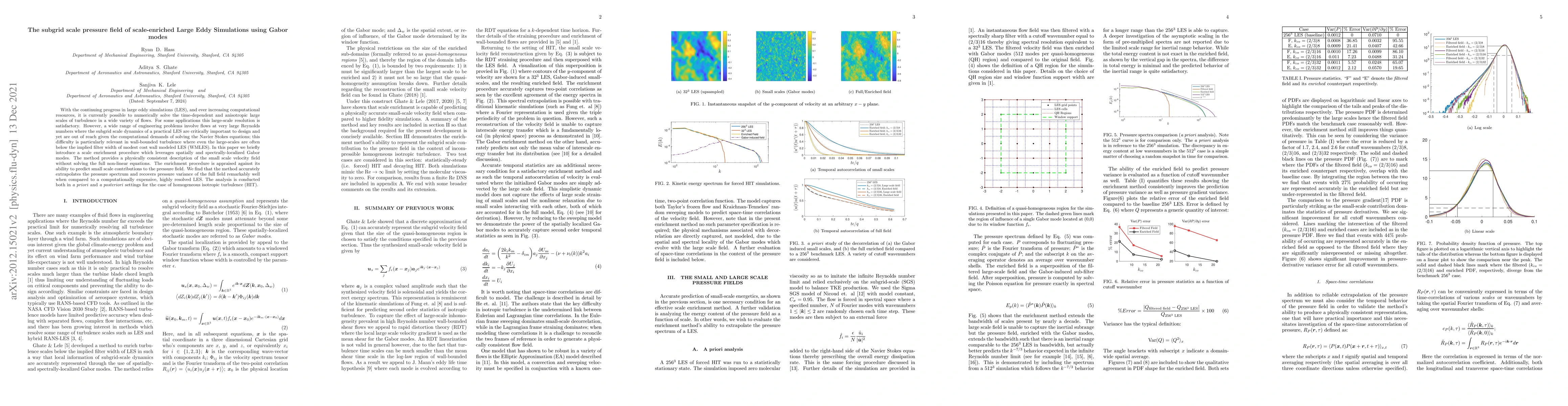 With the continuing progress in large eddy simulations (LES), and ever increasing computational resources, it is currently possible to numerically solve the time-dependent and anisotropic large scales of turbulence in a large variety of flows. For some applications this large-scale resolution is satisfactory. However, a wide range of engineering problems involve flows at very large Reynolds numbers where the subgrid scale dynamics of a practical LES are critically important to design and yet are out of reach given the computational demands of solving the Navier Stokes equations; this difficulty is particularly relevant in wall-bounded turbulence where even the large-scales are often below the implied filter width of modest cost wall modeled LES (WMLES). In this paper we briefly introduce a scale enrichment procedure which leverages spatially and spectrally-localized Gabor modes. The method provides a physically consistent description of the small scale velocity field without solving the full non-linear equations. The enrichment procedure is appraised against its ability to predict small scale contributions to the pressure field. We find that the method accurately extrapolates the pressure spectrum and recovers pressure variance of the full field remarkably well when compared to a computationally expensive, highly resolved LES. The analysis is conducted both in \textit{a priori} and \textit{a posteriori} settings for the case of homogeneous isotropic turbulence (HIT).
