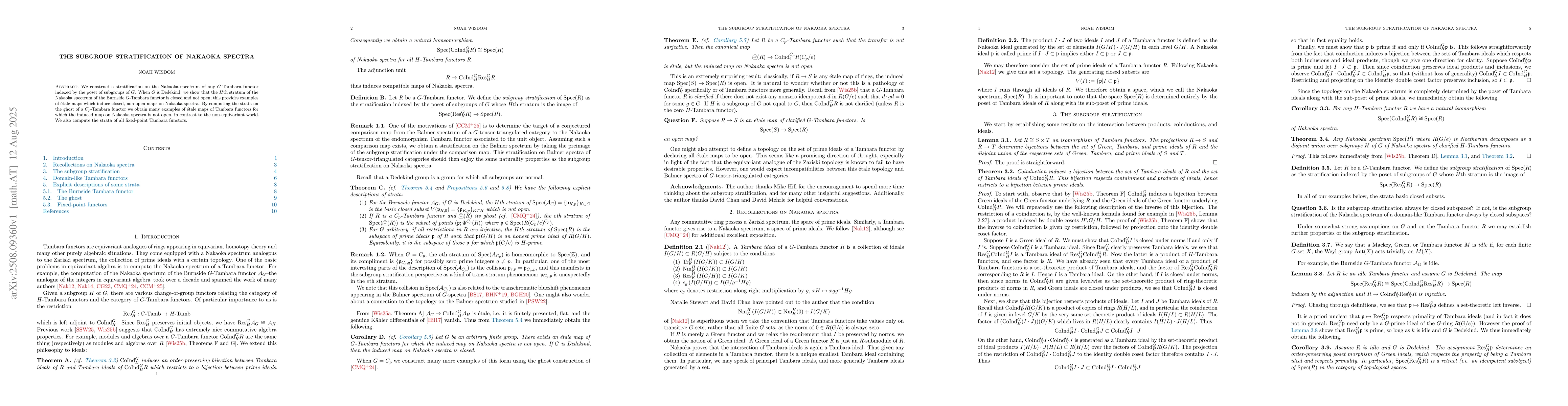 We construct a stratification on the Nakaoka spectrum of any $G$-Tambara functor indexed by the poset of subgroups of $G$. When $G$ is Dedekind, we show that the $H$th stratum of the Nakaoka spectrum of the Burnside $G$-Tambara functor is closed and not open; this provides examples of \'{e}tale maps which induce closed, non-open maps on Nakaoka spectra. By computing the strata on the ghost of a $C_p$-Tambara functor we obtain many examples of \'{e}tale maps of Tambara functors for which the induced map on Nakaoka spectra is not open, in contrast to the non-equivariant world. We also compute the strata of all fixed-point Tambara functors.