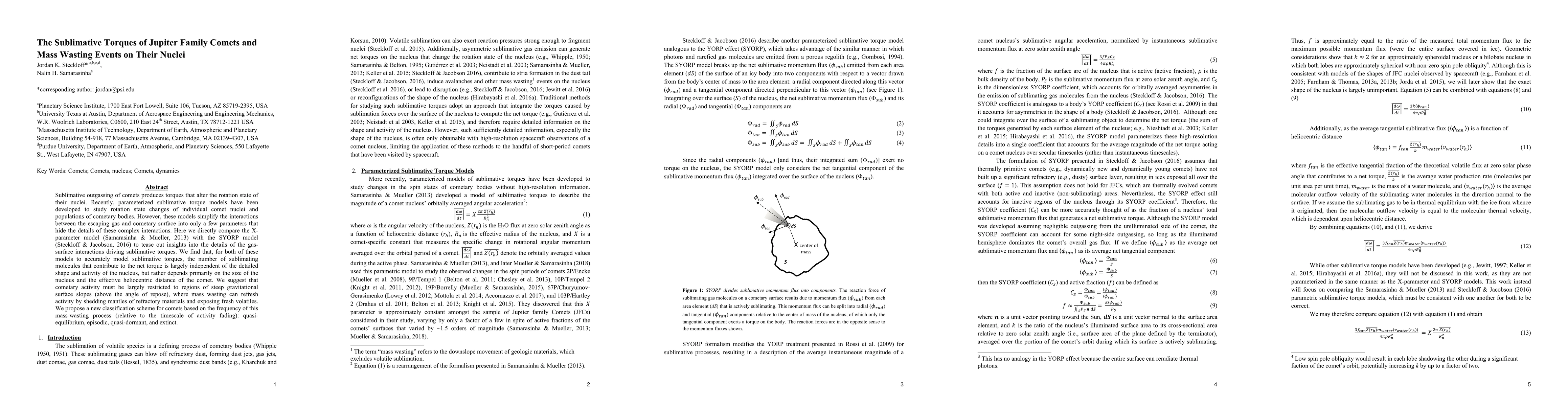 Sublimative outgassing of comets produces torques that alter the rotation state of their nuclei. Recently, parameterized sublimative torque models have been developed to study rotation state changes of individual comet nuclei and populations of cometary bodies. However, these models simplify the interactions between the escaping gas and cometary surface into only a few parameters that hide the details of these complex interactions. Here we directly compare the X-parameter model (Samarasinha & Mueller, 2013) with the SYORP model (Steckloff & Jacobson, 2016) to tease out insights into the details of the gas-surface interactions driving sublimative torques. We find that, for both of these models to accurately model sublimative torques, the number of sublimating molecules that contribute to the net torque is largely independent of the detailed shape and activity of the nucleus, but rather depends primarily on the size of the nucleus and the effective heliocentric distance of the comet. We suggest that cometary activity must be largely restricted to regions of steep gravitational surface slopes (above the angle of repose), where mass wasting can refresh activity by shedding mantles of refractory materials and exposing fresh volatiles. We propose a new classification scheme for comets based on the frequency of this mass-wasting process (relative to the timescale of activity fading): quasi-equilibrium, episodic, quasi-dormant, and extinct.