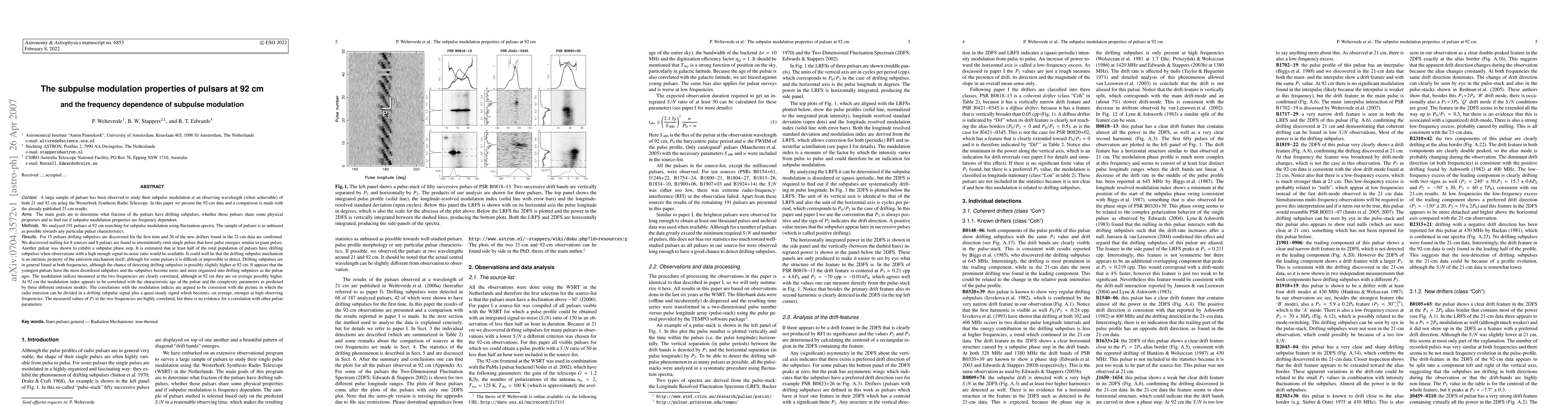 Researchers studied pulsar subpulse modulation at 92 cm using Westerbork Synthesis Radio Telescope, discovering drifting subpulses in 15 new pulsars and a possible correlation between frequency and subpulse disorder.