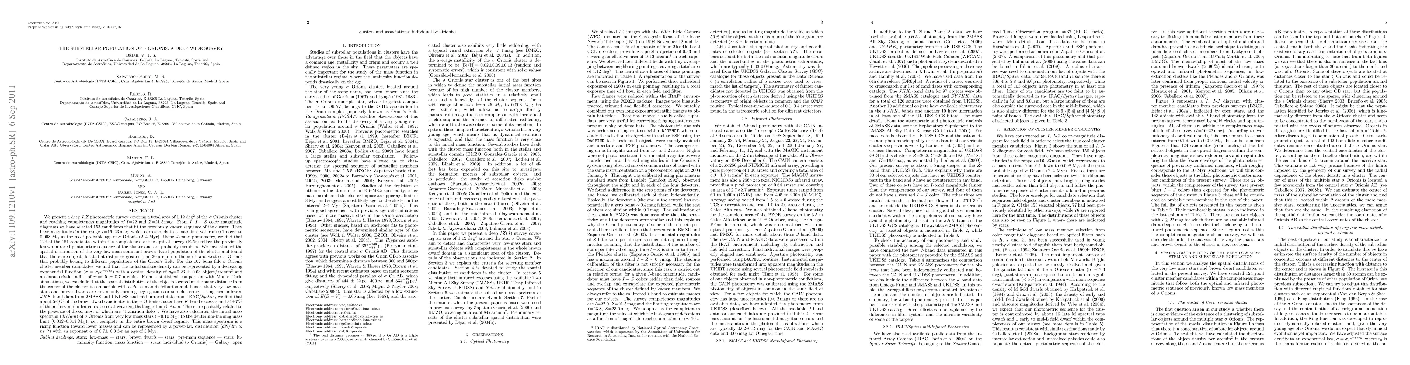 The study presents a deep photometric survey of the Sigma Orionis cluster, identifying 151 probable members, including brown dwarfs. It finds that 5-9% have K-band excesses, suggesting disk presence, and 31% show mid-infrared excesses beyond 5.8 microns. The initial mass spectrum of the cluster, from 0.10 to 0.012-0.013 solar masses, rises towards lower masses, fitting a power-law distribution with exponent 0.7. The spatial distribution of members follows a Poissonian pattern, indicating no significant aggregation or sub-clustering.