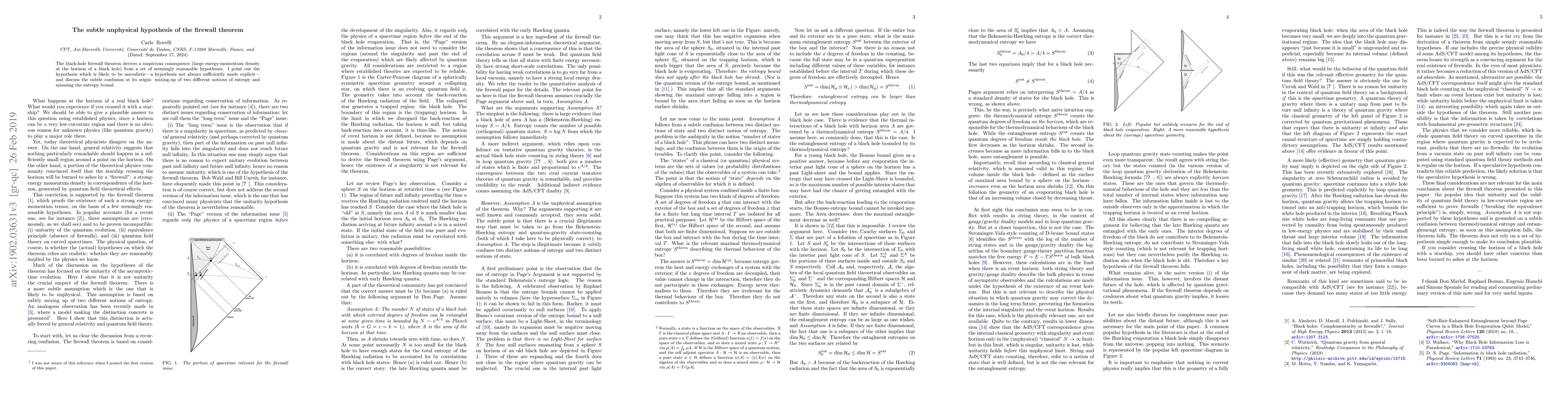 The black-hole firewall theorem derives a suspicious consequence (large energy-momentum density on the horizon of a black hole) from a set of seemingly reasonable hypotheses. I point out the hypothesis which is likely to be unrealistic---a hypothesis not always sufficiently made explicit--- and discuss the subtle confusion at its origin: mixing-up of two different notions of entropy and misusing of the entropy bound.
