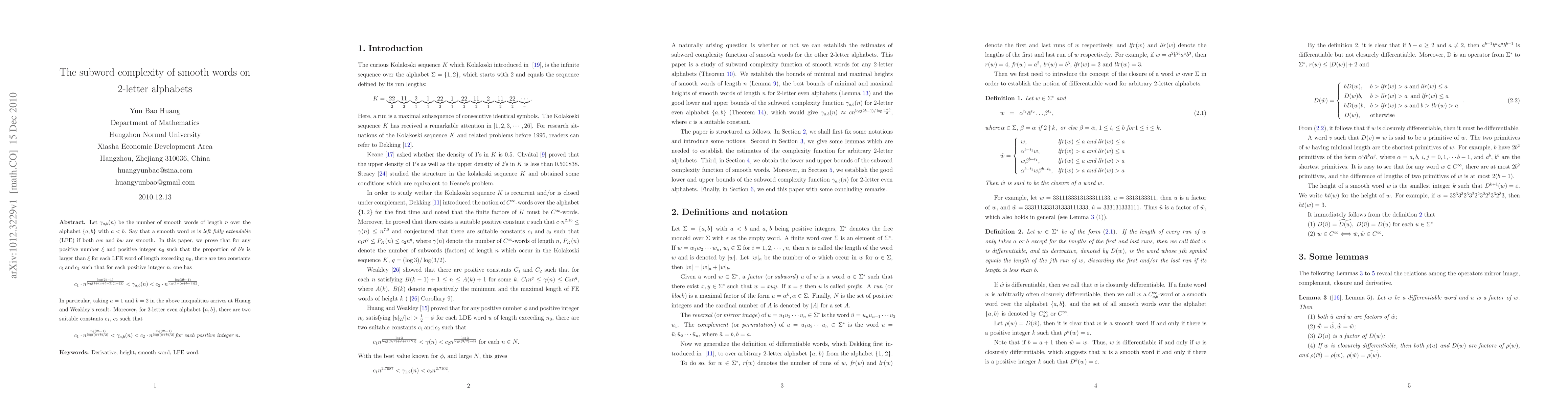 Let $\gamma_{a,b}(n)$ be the number of smooth words of length $n$ over the alphabet $\{a,b\}$ with $a