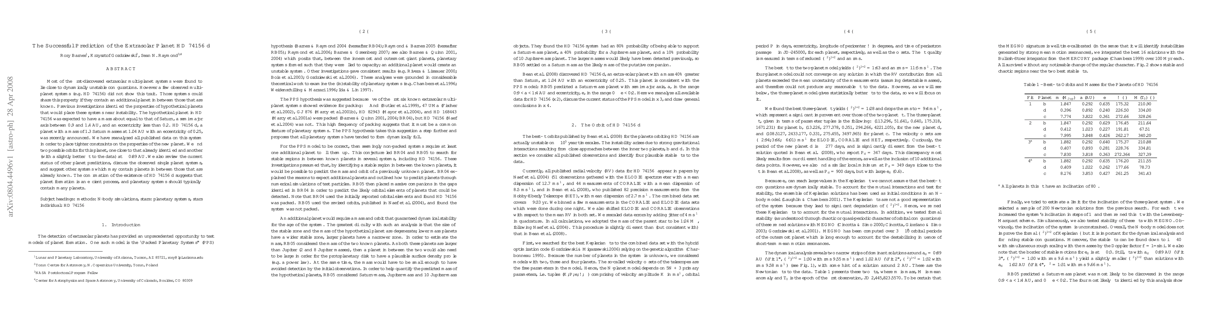 The research confirms the existence of the extrasolar planet HD 74156 d, suggesting efficient planet formation and that planetary systems often contain multiple planets. The analysis identifies two possible orbits for HD 74156 d, with one fitting the data slightly better at ~0.89 AU.