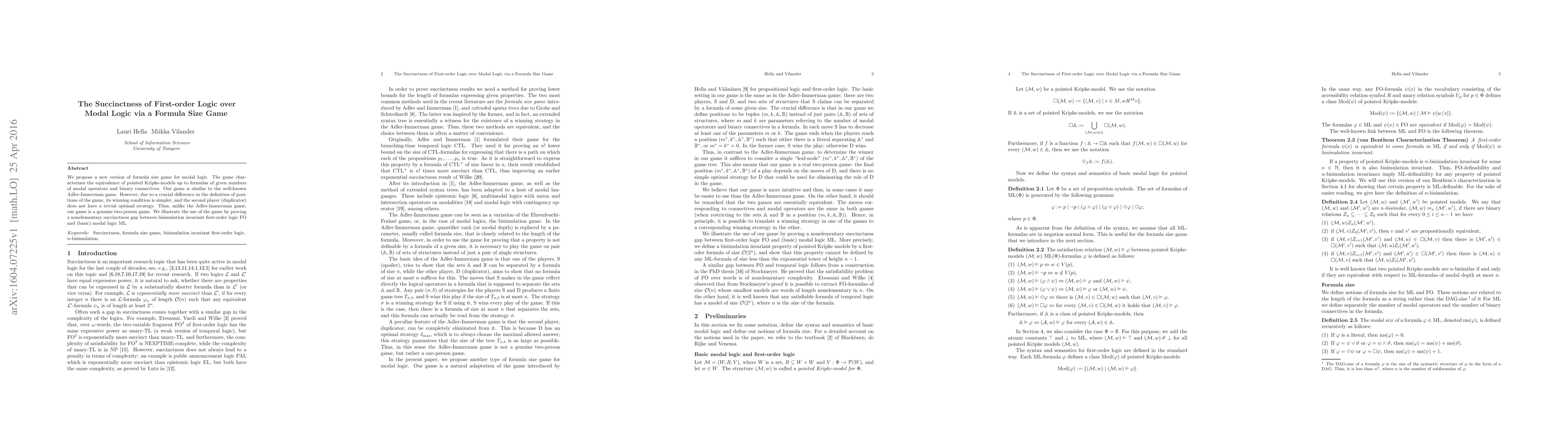 This paper introduces a new formula size game for modal logic, differing from the Adler-Immerman game by simplifying the winning condition and providing a non-trivial optimal strategy for the second player. The game demonstrates a nonelementary succinctness gap between first-order logic and basic modal logic.