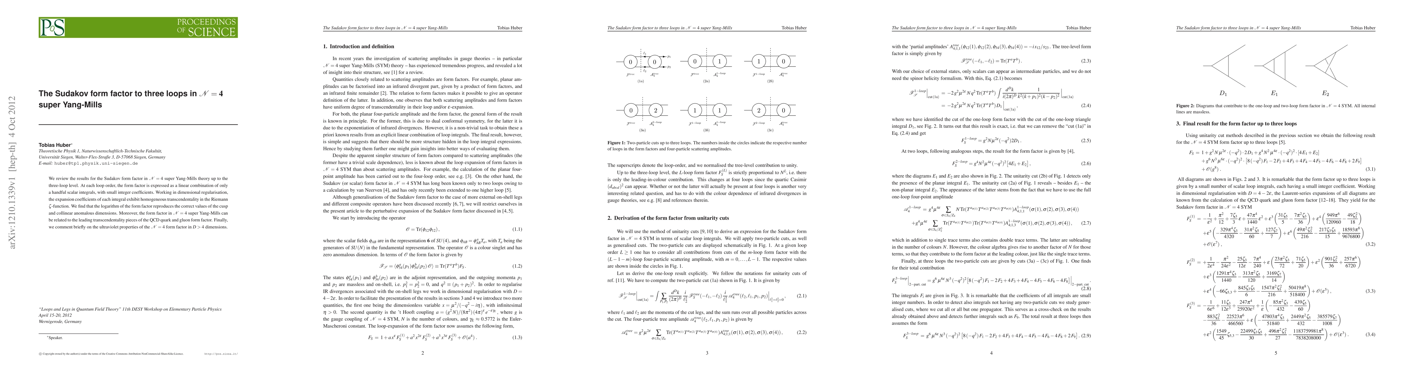 This paper reviews the calculation of the Sudakov form factor in N=4 super Yang-Mills theory up to three loops, revealing a linear combination of scalar integrals with integer coefficients. The study finds that the form factor's logarithm correctly matches cusp and collinear anomalous dimensions, and relates it to leading transcendentality in QCD form factors.