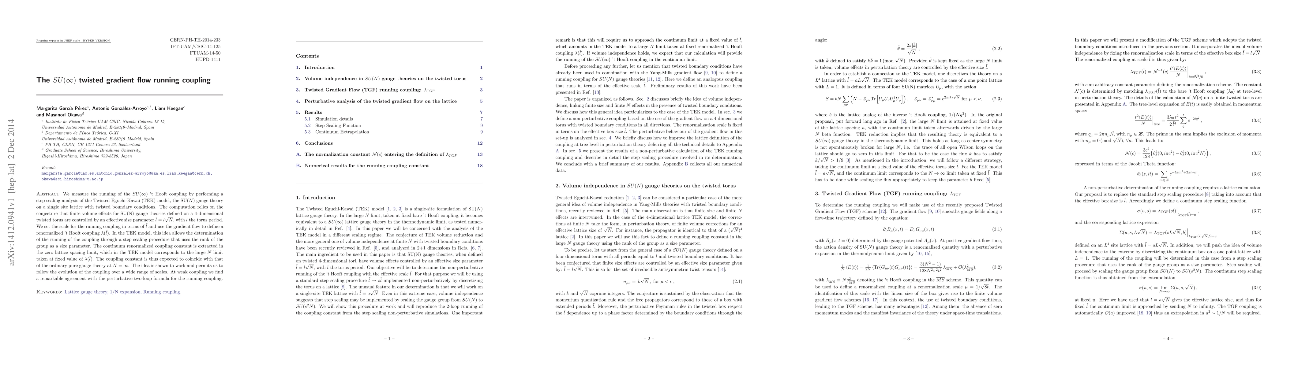 This paper measures the running of the $SU(\infty)$ 't Hooft coupling using the Twisted Eguchi-Kawai model and gradient flow, finding agreement with perturbative two-loop predictions at weak coupling. The study employs a step scaling analysis and the large $N$ limit to extract the continuum renormalized coupling constant.