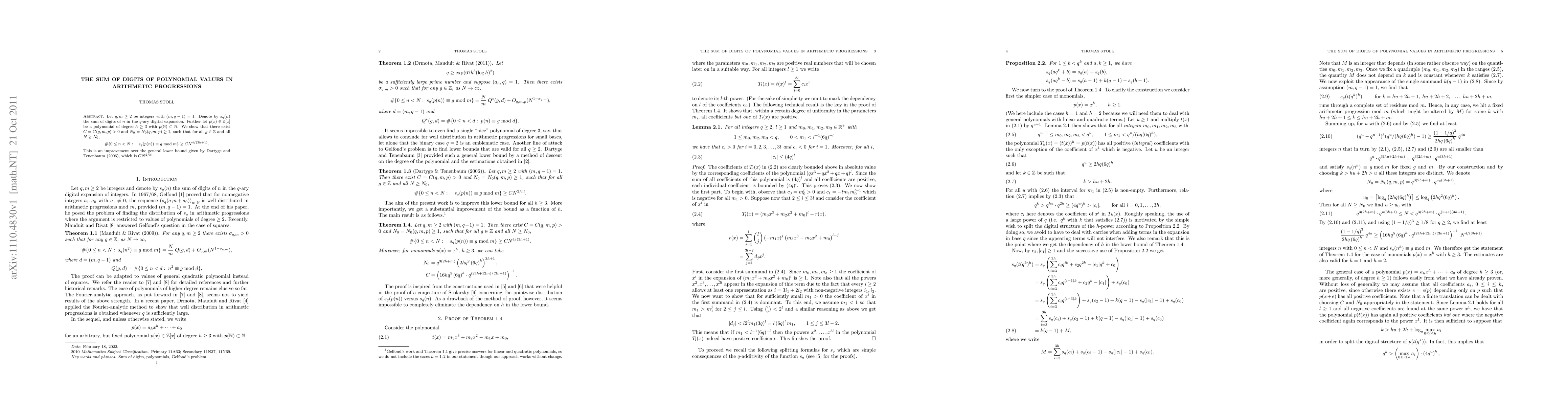 This research paper proves a specific lower bound for counting occurrences of digit sums in polynomial values modulo m, improving an existing general bound.