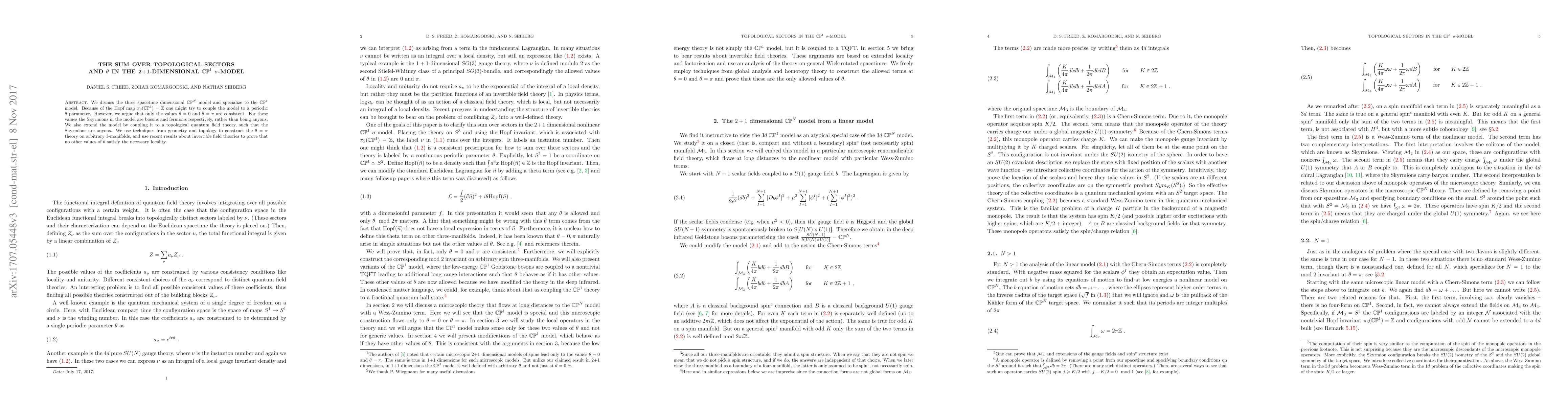 Researchers explored a 2+1 dimensional CP1 model, finding that it can only couple with theta values of 0 or pi, resulting in bosons or fermions, but not anyons. They also developed a topological quantum field theory version at theta = pi on arbitrary 3-manifolds.