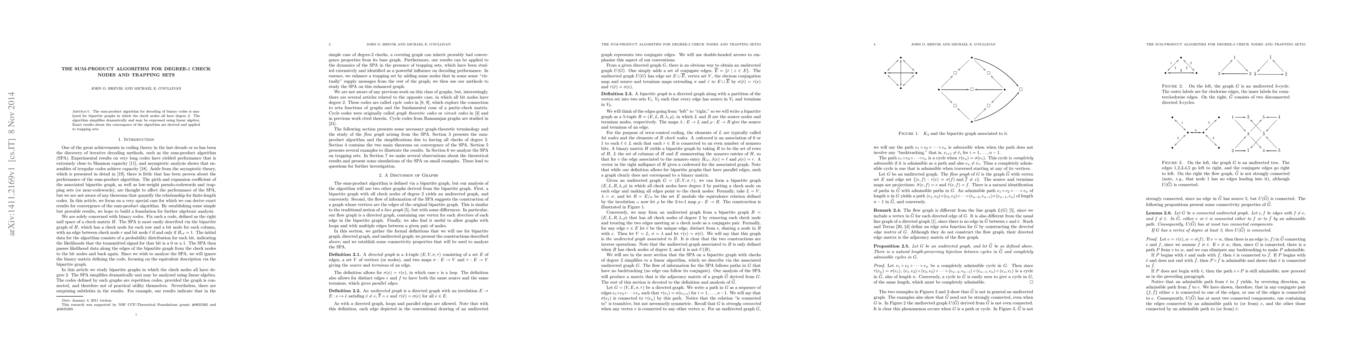 The sum-product algorithm is simplified for degree-2 check nodes in bipartite graphs, allowing for linear algebra expressions. Exact convergence results are derived and applied to analyze trapping sets.