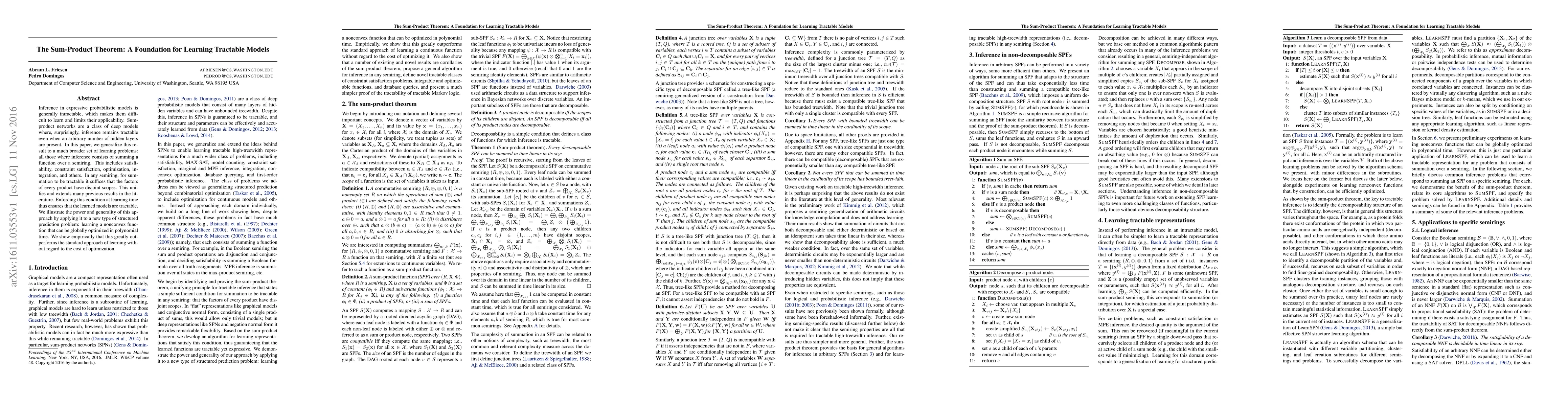 This paper generalizes the sum-product theorem to a wide range of learning problems, showing that inference remains tractable when factors in the model have disjoint scopes. It demonstrates the effectiveness of this approach in learning nonconvex functions that can be globally optimized in polynomial time, outperforming traditional methods.