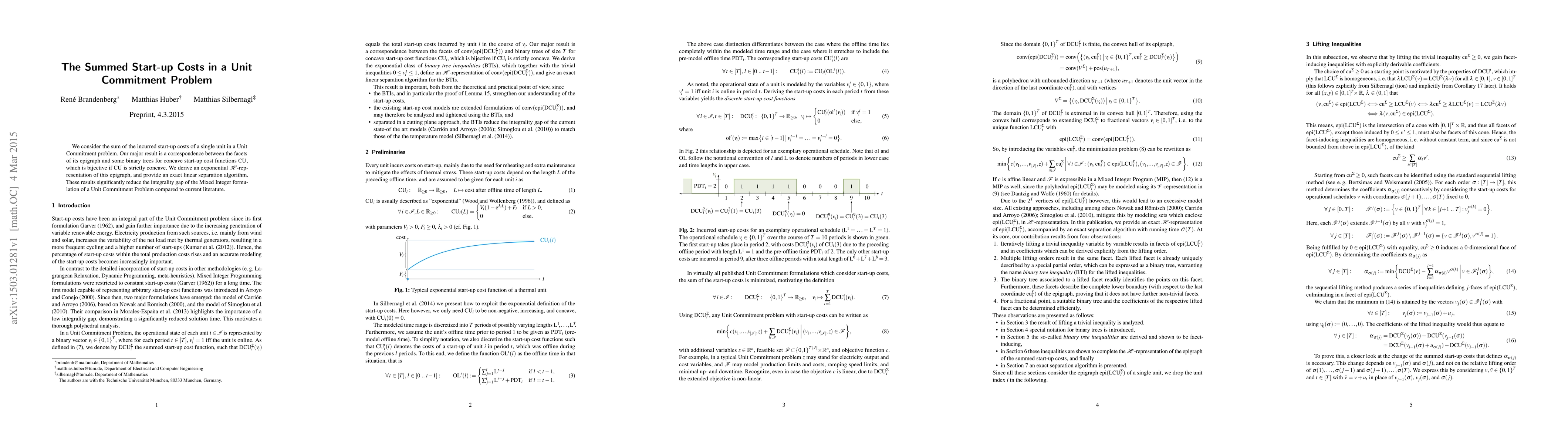 This paper investigates the summed start-up costs in a Unit Commitment problem, establishing a correspondence between the epigraph's facets and binary trees for strictly concave cost functions. The study provides an exponential H-representation and an exact linear separation algorithm, significantly reducing the integrality gap in Mixed Integer formulations.
