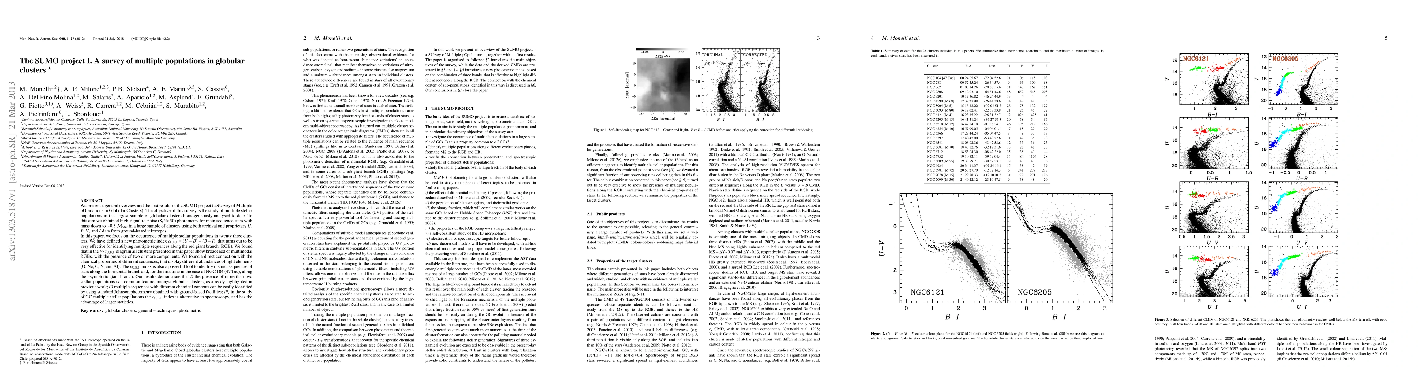 This paper presents the first results of the SUMO project, which surveys multiple stellar populations in globular clusters. The study reveals that all 23 clusters analyzed exhibit broadened or multimodal red giant branches, indicating the presence of two or more stellar populations with distinct chemical compositions, identified using a new photometric index cubi.