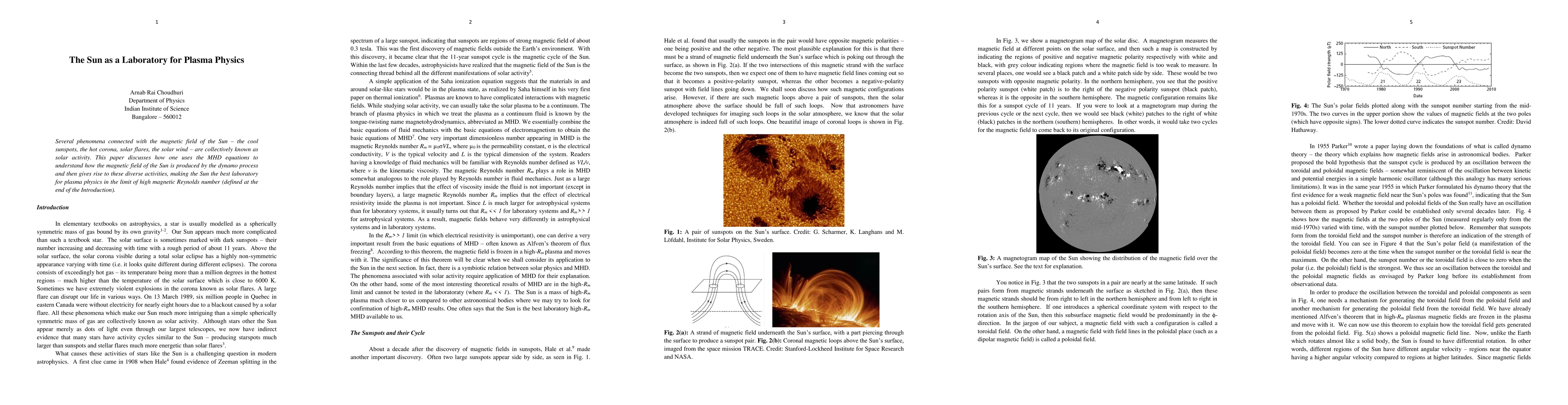 The paper explores solar activity phenomena via MHD equations, revealing how the Sun's magnetic field, generated by a dynamo process, leads to diverse activities like sunspots, corona, flares, and solar wind, positioning the Sun as an ideal lab for high magnetic Reynolds number plasma physics study.